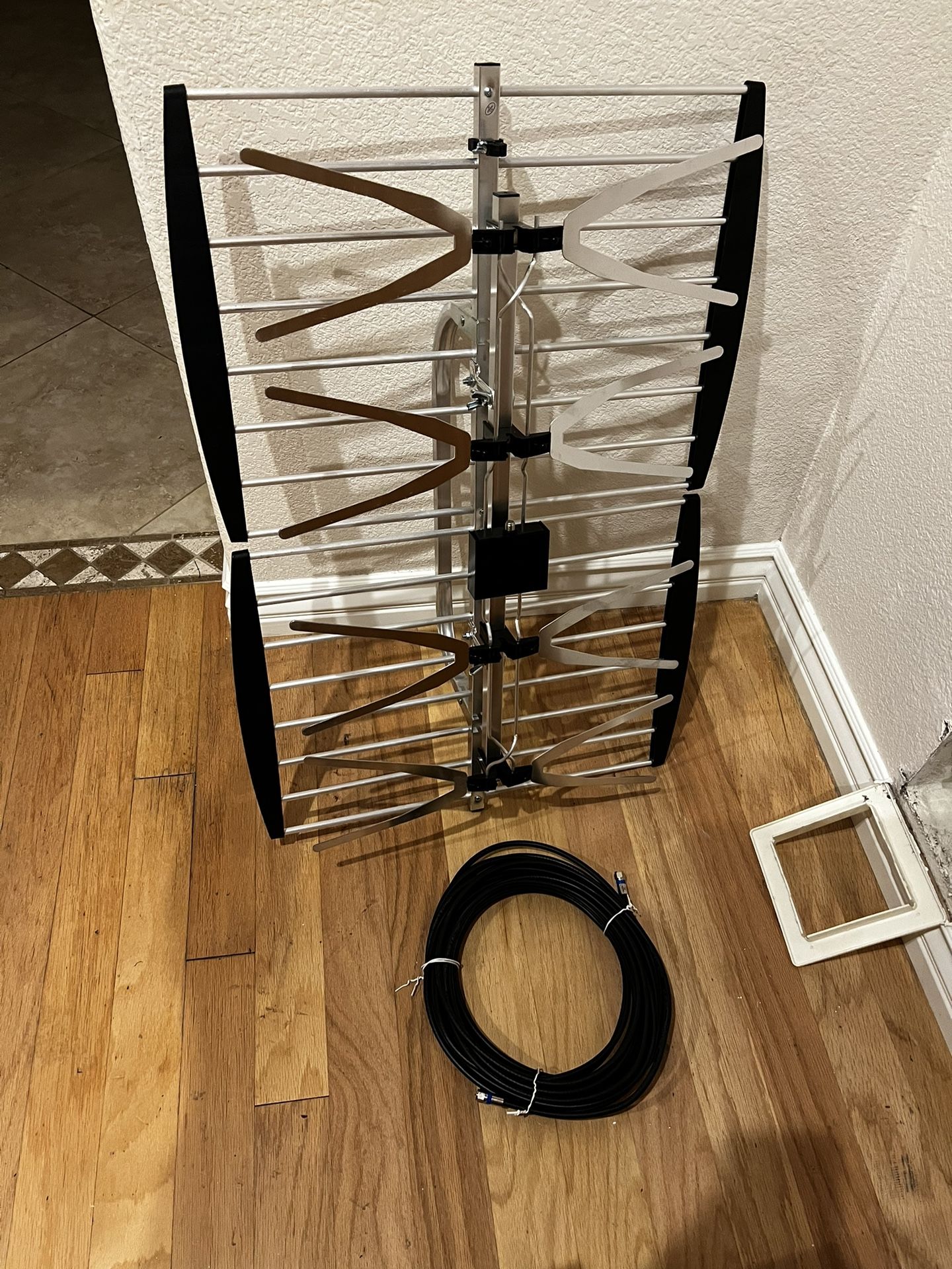 Get over the air HDTV channels with this antenna, includes 25foot coax cable and mounting hardware.