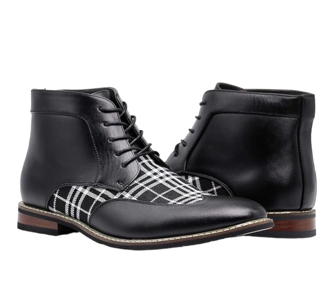 These fine spectator plaid ankle boots with two tone colors upper, faux leather + plaid canvas material, wingtips with perforated. This is not only a pair unique and stylish dress boots, they will also be functional. It's the best looking shoes for musicians,swing dancers and men who admire the glorious twenties and thirties. The two tone color spectator shoes look fantastic with white flannel slacks or brown suits. That will more likely earn “Oh, how elegant” compliments. It can be used as formal wear or casual or costume party. It is a perfect shoe for weekend outfits, casual Fridays, outdoor weddings or garden parties when paired with a sport coat and solid pants. It will always exude the flair of the Golden Age of men’s style and elevate your outfit. The key is to keep all other pieces subtle, so the shoes can shine without overpowering your outfit.Why paying hundreds for a pair high end shoes that you can get the same looking pair for much lower here.