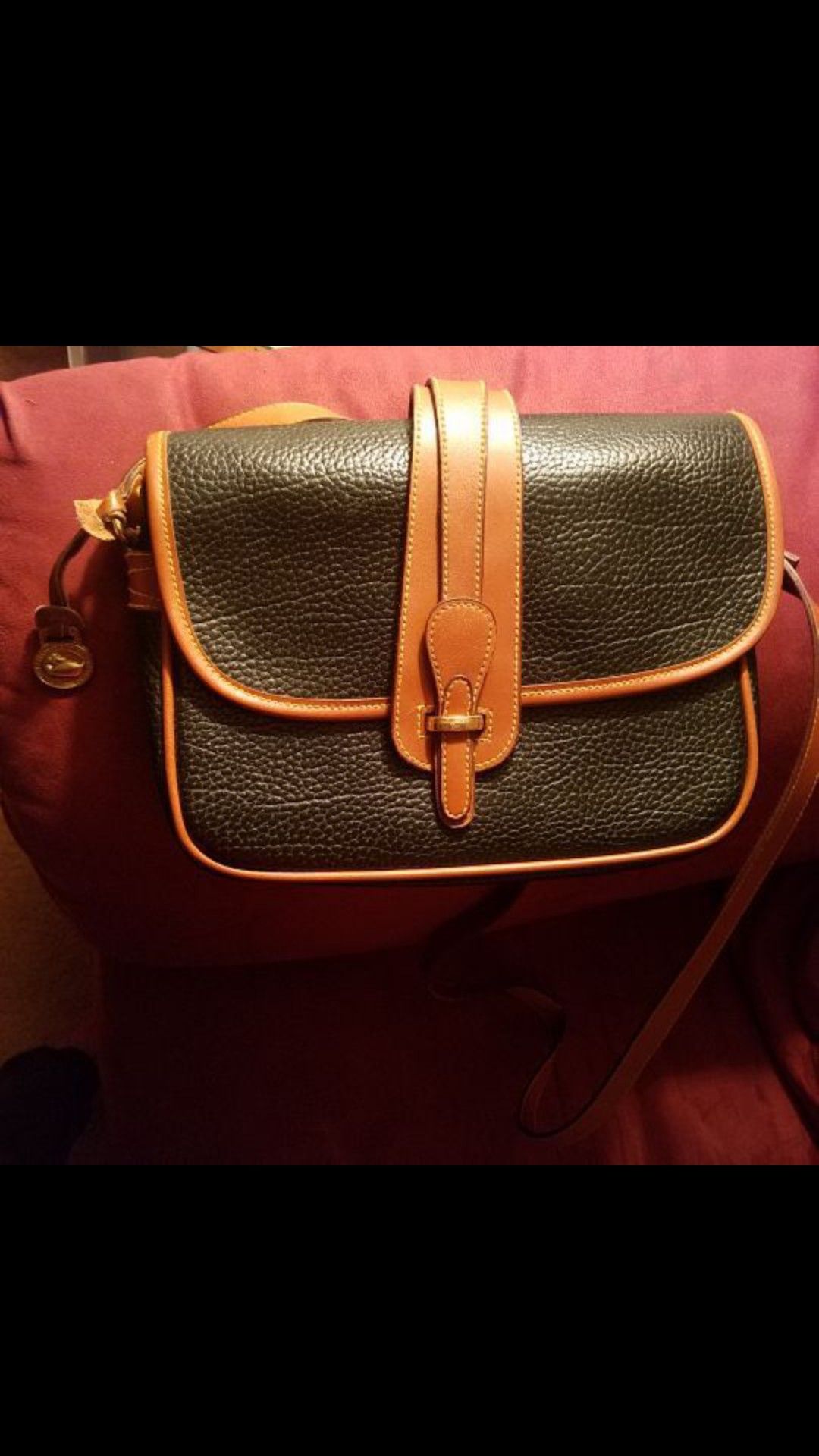 Dooney and Burke women's pocketbook in black pebble leather with wheat trimmings. Has matching wallet to accompany it with same colors.