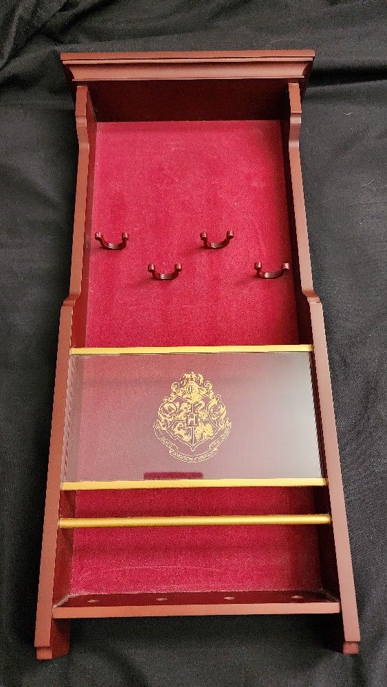 Used, in perfect condition. Wall mountable. Holds 4 wands. Daughter off to college. Selling all their Harry Potter memorabilia.