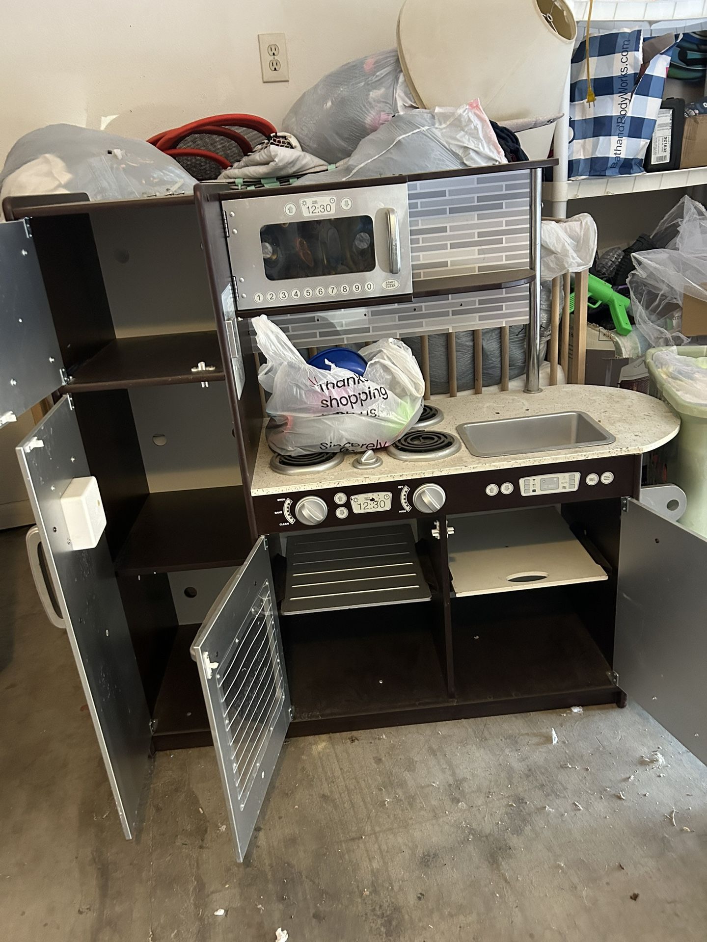 Kids Kitchen With Food And Dishes