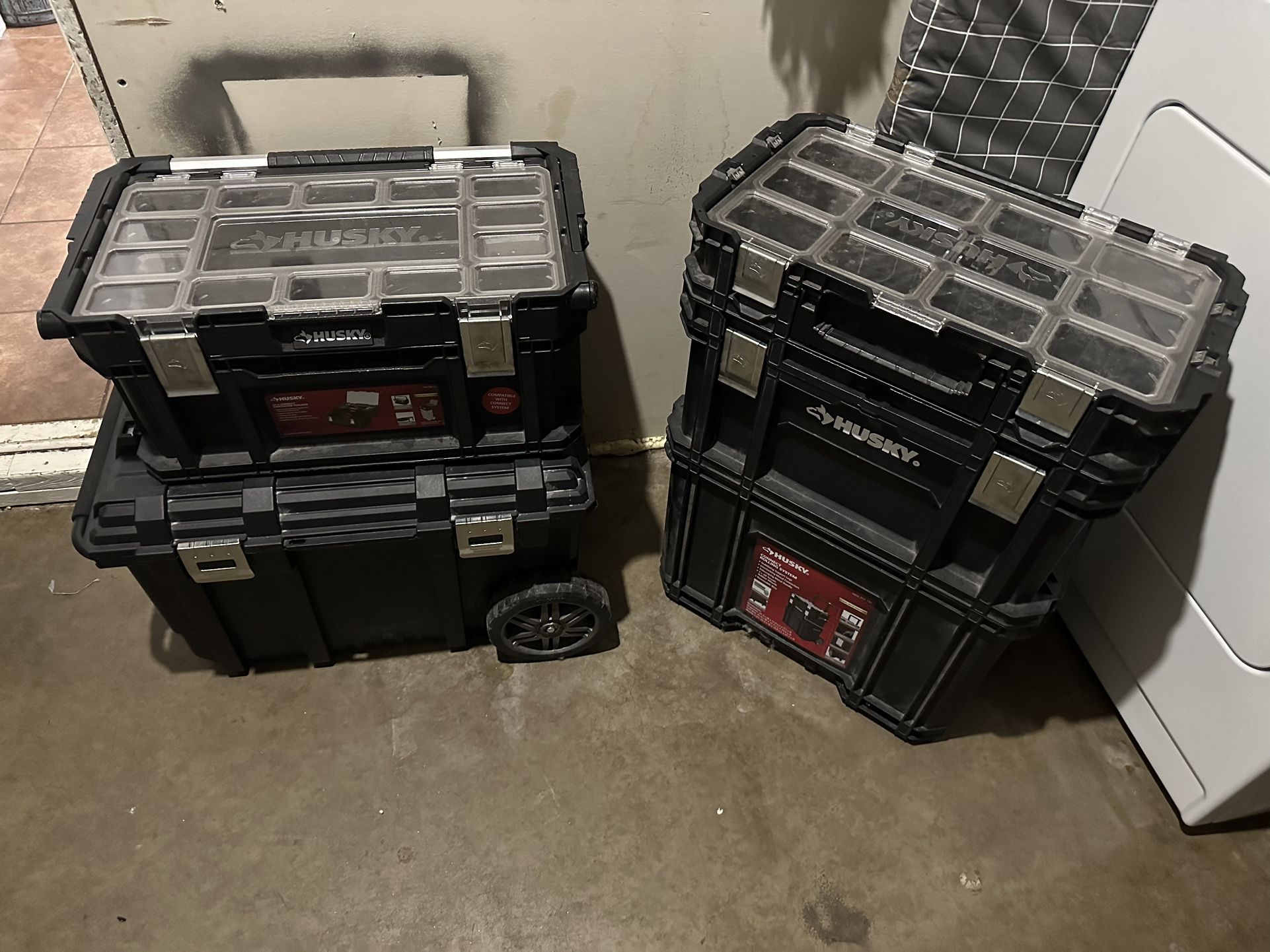 Husky connect rolling system. Located near north star mall Cash only, no trades. Can deliver depending on location 5 boxes total selling together, will not separate Everything is used, but still in excellent condition.