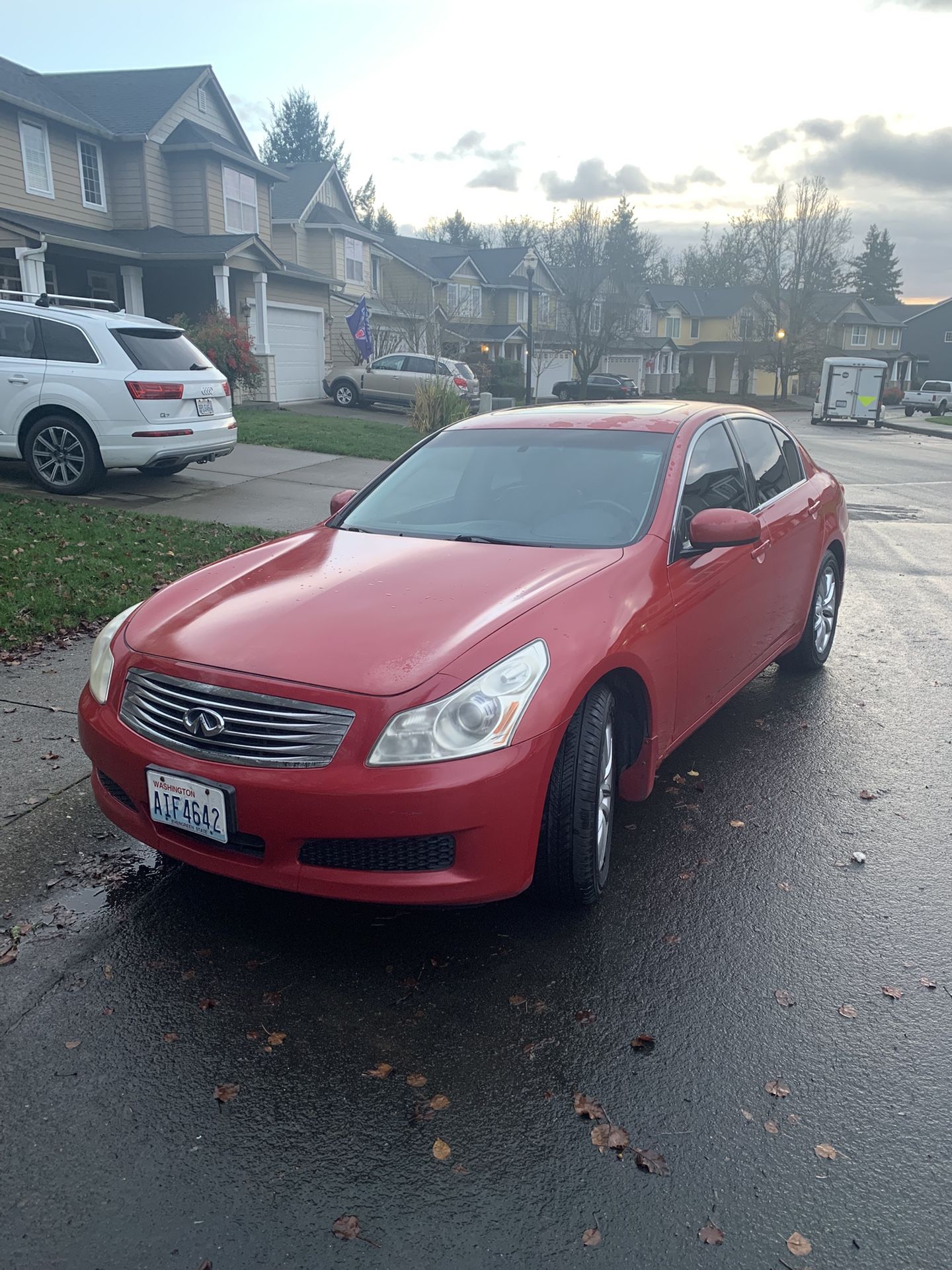2008 Infiniti G35X 3.5 V6 170k miles This is a super fun car to drive and has always been well maintained regularly, often times by the dealership. Comes with a clean title and all maintenance records. Starts and drives great apart from stalling in 1st gear sometimes when coming to a stop. The G35X comes with the premium package features Pros: Clean title Brand new battery Brand new tires Brand new thermostat Just been professionally detailed Coolant recently flushed and replaced Often maintained by dealership All maintenance records Includes 2 original key fobs Cons: Often stalls in 1st gear when coming to a stop not sure what the problem is Some paint fading as seen in photos Feel free to message me with questions
