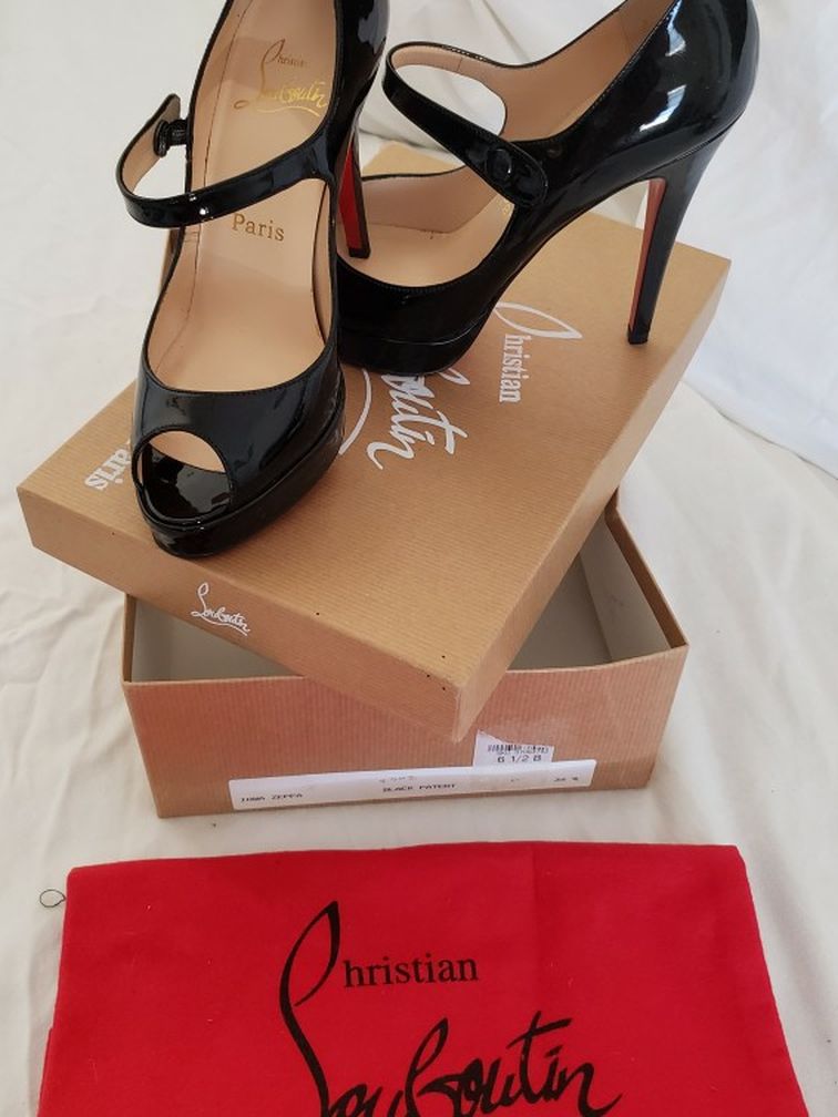 Christian Louboutin Iowa Zeppa Black Patent SZ 36 1/2 Worn only once. Purchased at South Coast Plaza. Guaranteed Authentic.