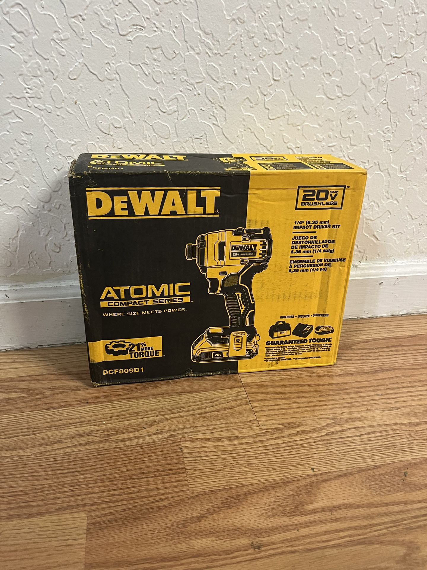 Up for sale is a DEWALT ATOMIC 20V MAX Brushless Compact 1/4" Impact Driver Kit (Model DCF809D1). This tool is part of the ATOMIC Compact Series, designed to provide high performance while fitting into tight spaces that standard impact drivers can't reach. Key Features: Compact Power: Only 5.1 inches in length, making it perfect for working in cabinetry and tight corners. Brushless Motor: Delivers up to 1,700 in-lbs of torque, providing the power you need for most heavy-duty applications. Precision Control: Variable speed trigger allows for precise control on delicate work surfaces. Max Visibility: Features 3 built-in LED lights to illuminate your workspace and eliminate shadows. Ergonomic Design: Comfortable grip handle for better balance and easier tool control during extended use. Specifications: Voltage: 20V MAX Drive Size: 1/4" Quick Release Hex Torque: 1,700 in-lbs Speed: 0-2800 RPM / 0-3200 IPM What’s Included in the Box: (1) DCF809 20V MAX Brushless 1/4" Impact Driver (1) 20V MAX Lithium-Ion Battery (1) 20V MAX Charger (1) Belt Clip (1) DEWALT Contractor Bag