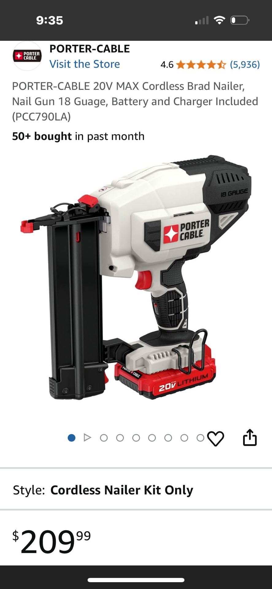 20 V Porter Cable Cordless Brad Nailer w/Lithium Battery  - Sells $210 New