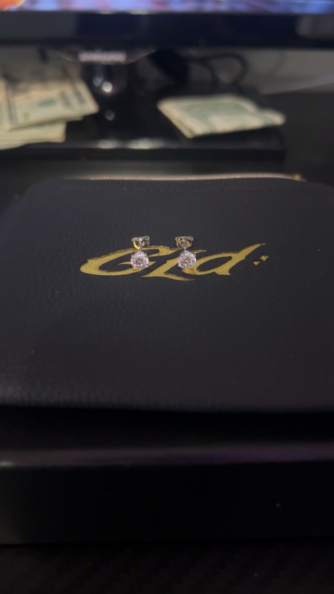 Gld diamond earring Bought for 100 never used 1 bit because I was never able to pierce my ears so I’m selling them 5mm