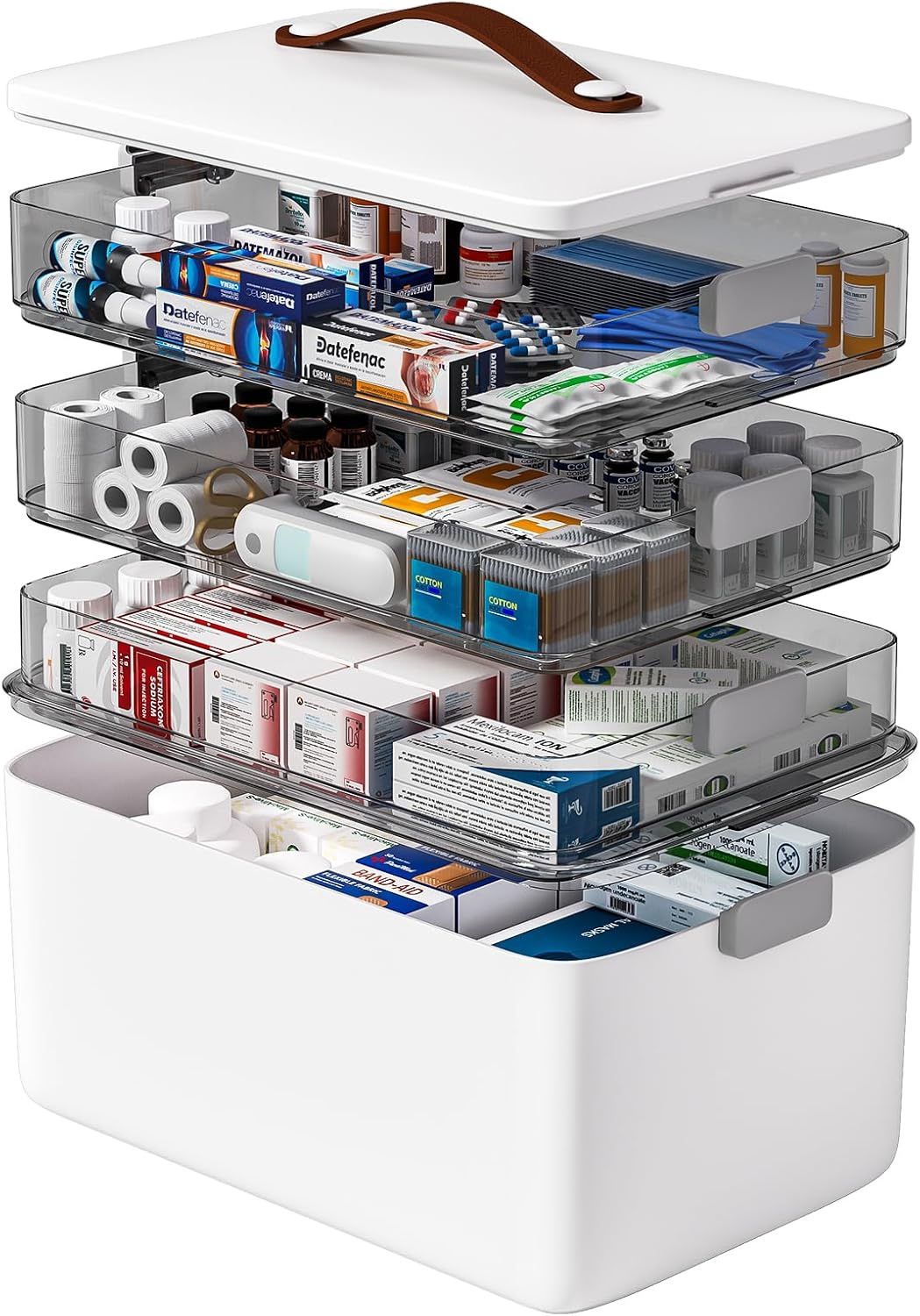 Funest 4-Tier Medicine Storage Box Cabinet, Empty First Aid Kit Portable Medical Supply Organizer With Leather Handle For Home Villa del Sol 2801 N Rainbow Blvd guest parking