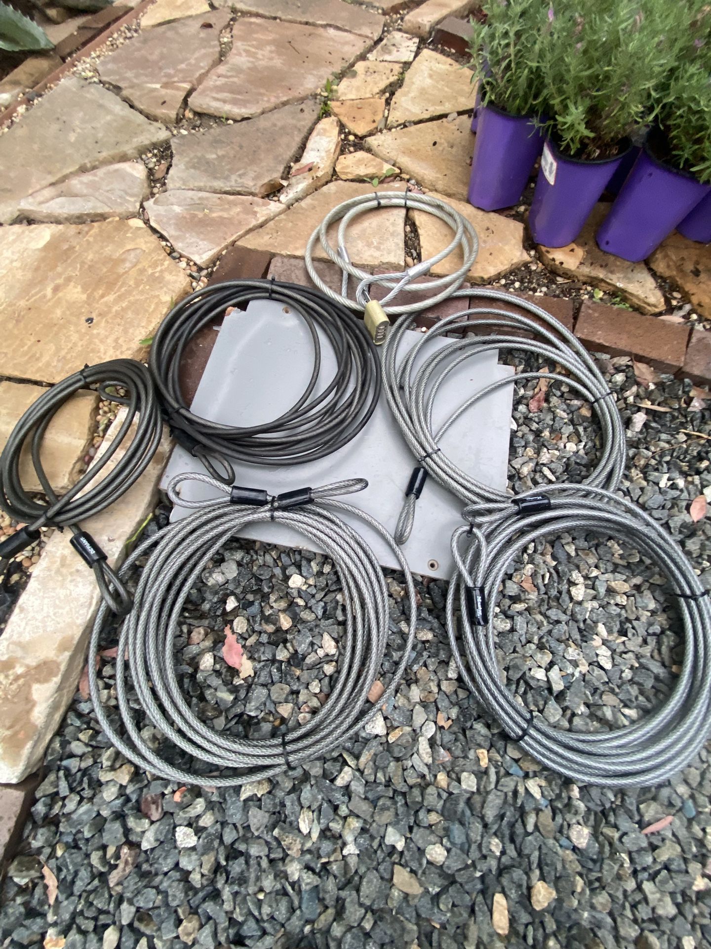 There is master lock 30 footers and a couple Defiant 20 footers and a 15 footer as well. Price is negotiable if you buy more than one. I also have master combo Locks to go with the cables that I will throw in for $10 with each cable purchased!.