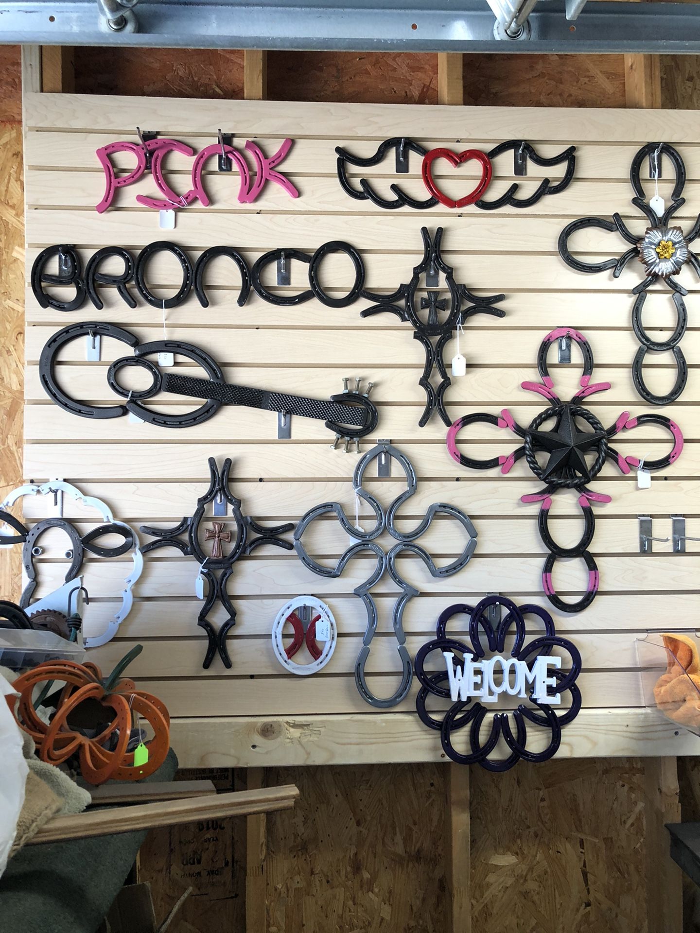 I can make you anything with horseshoes. Also horseshoe and antique iron wagon wheel furniture.