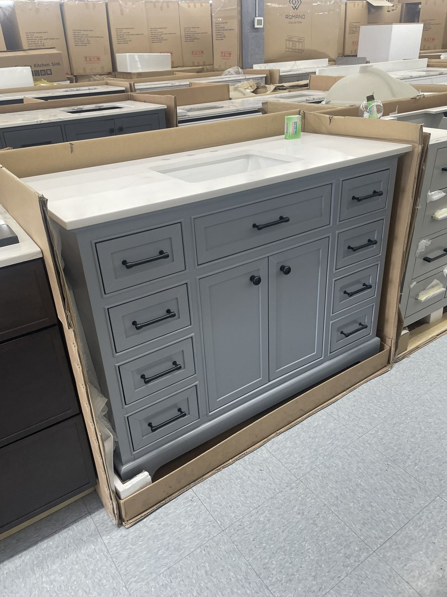 Bathroom vanity cabinet 48” solid Oak Quartz top with sink and backsplash