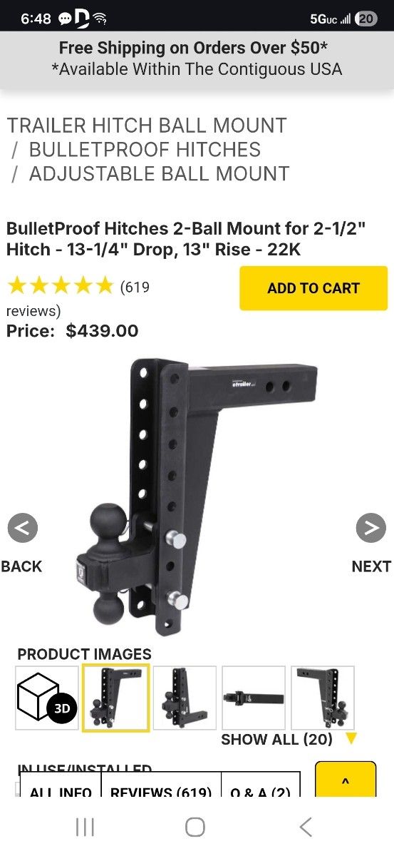 Our 2.5" Extreme Duty 12" Drop or Rise Hitch is unlike any of our competitors' products. We worked hard to create 1 amazing Hitch that does the work of 10. Our hitches are extensively tested and exceed SAE-J684 testing requirements. They are built to such a high standard that we have never had a single failure. You can see why from the features listed below: Class 5 Hitch with a 36,000 lb Max Towing Capacity & 6,000 lb Tongue Weight Capacity. 7 Ride Heights that are Easily Adjustable. The 2.5" Extreme Duty 12" Drop/Rise Hitch Weighs 85 Pounds. Used 4 times. Priced to sell quick. Price firm. Don't ask