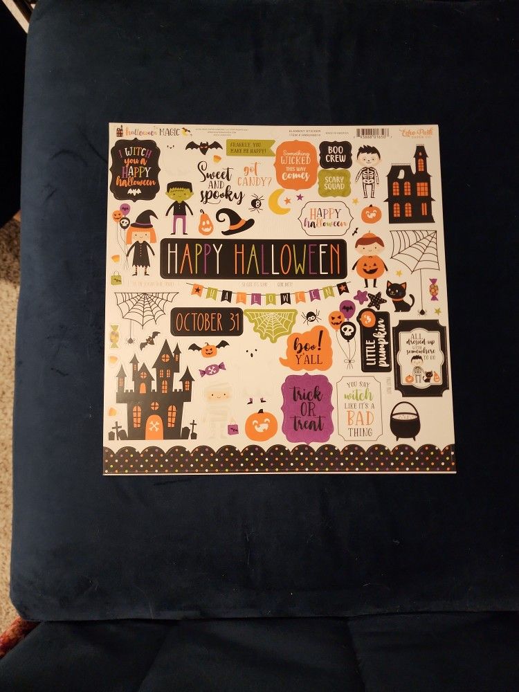 Echo Park scrapbook stickers. All six scrapbook sticker sheets are not in their package but they were never used. Like new. They're not for planners, only scrapbooking. Each sheet measures 12 in x 12 in. $20 for all six sheets.