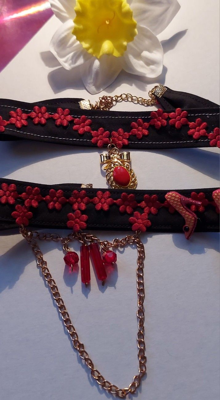 Handmade Cute 2 Choker Black And Red, Made With Love $ 15.00