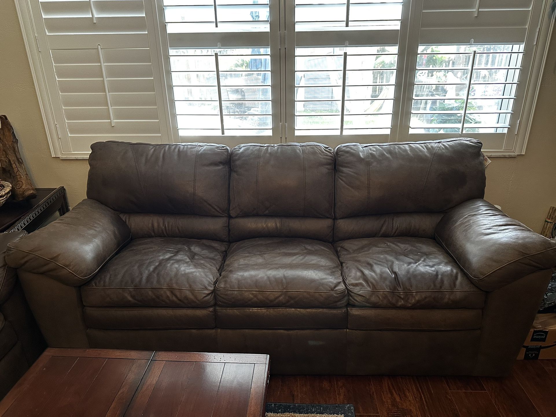Genuine leather sofa, love seat, chair and ottoman for sale. Super comfortable. Set also includes a matching coffee table and end table. Coffee table opens up to double the size. Beautiful set. $2,000 or best offer. I would like to sell it as a full set. Pick up only. Delivery not available.
