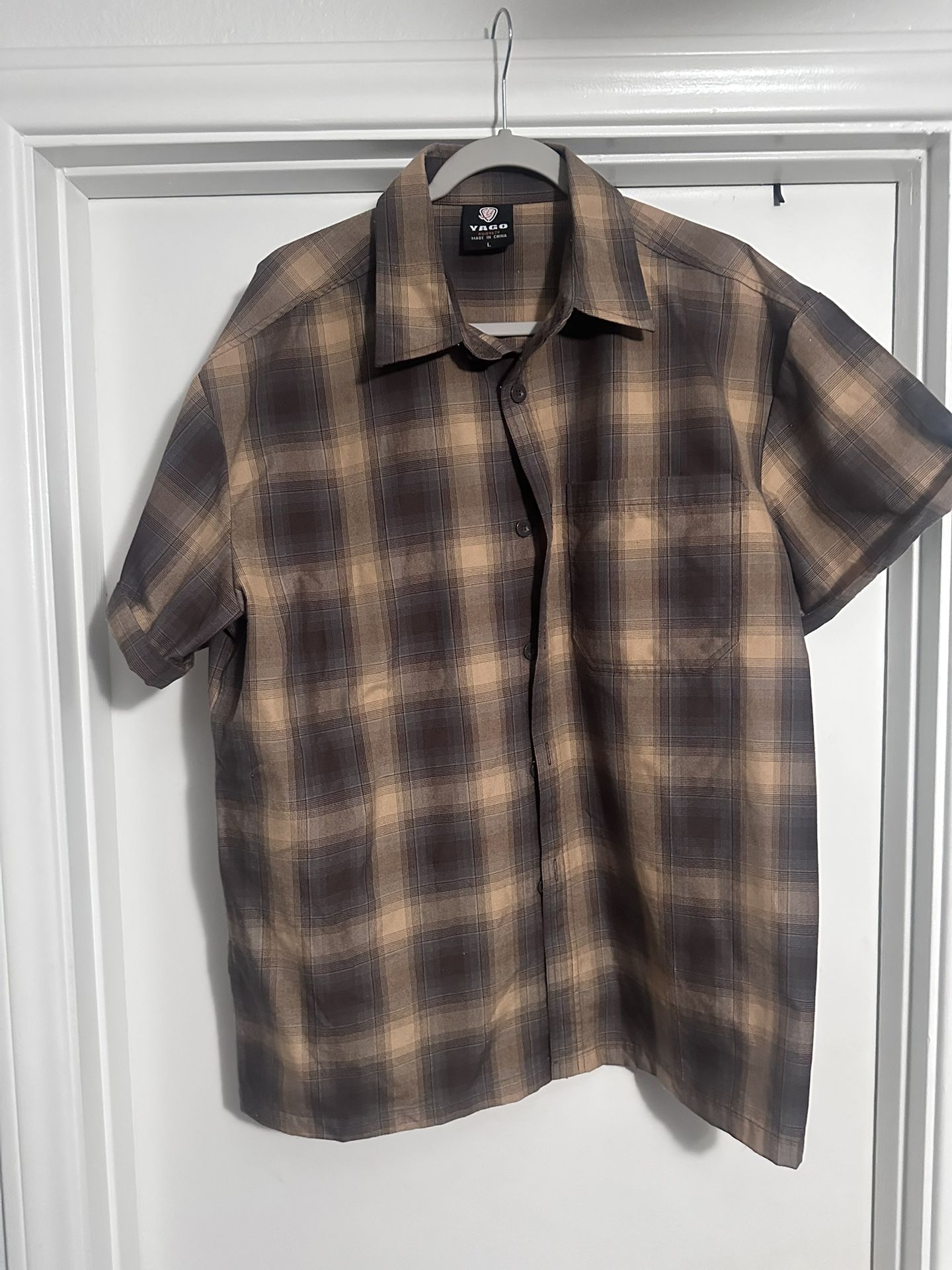 YAGO Men's Short Sleeve Plaid Woven Work Shirt