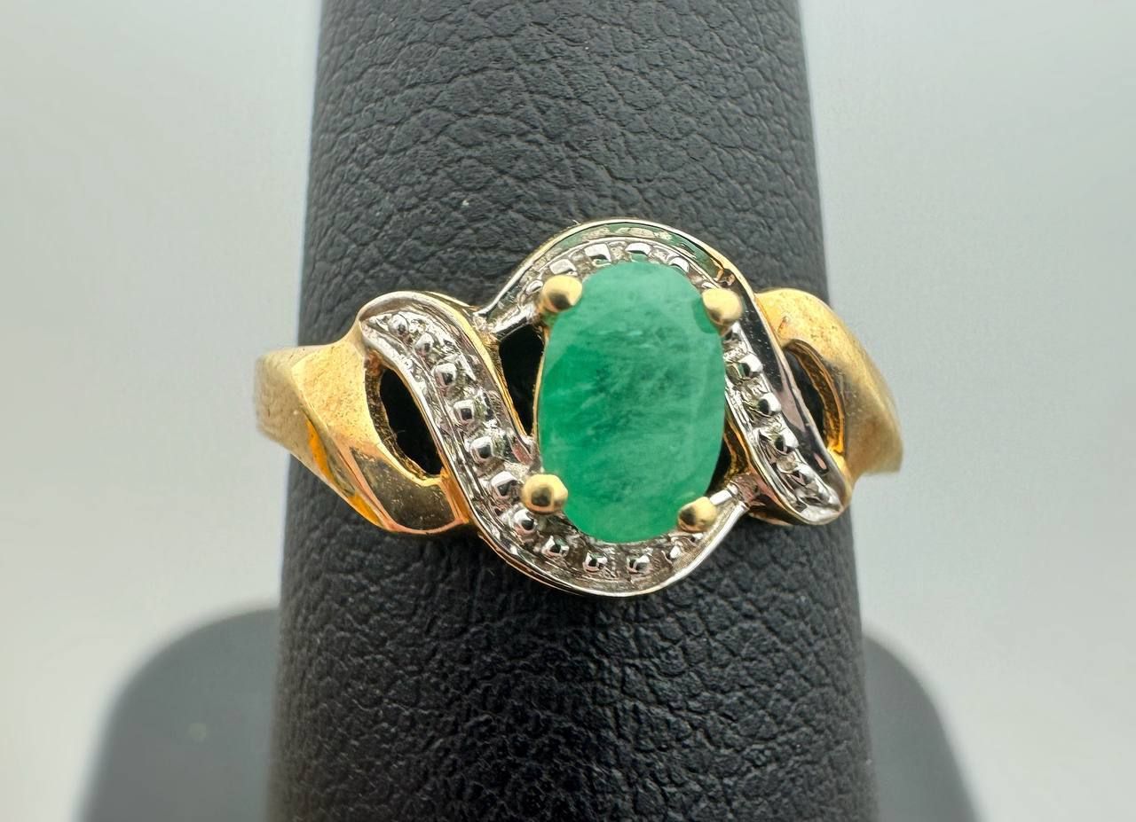Jewelry 10k solid yellow gold malachite 0.5CTW ring sz 7.00