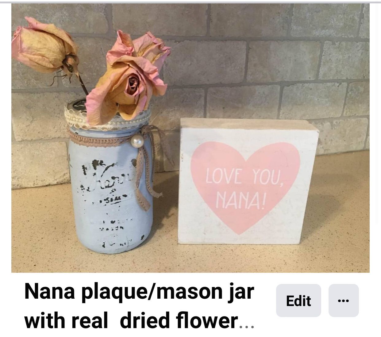 Mason jar with real dried roses and nana plaque Very cute for a special gift! Covina