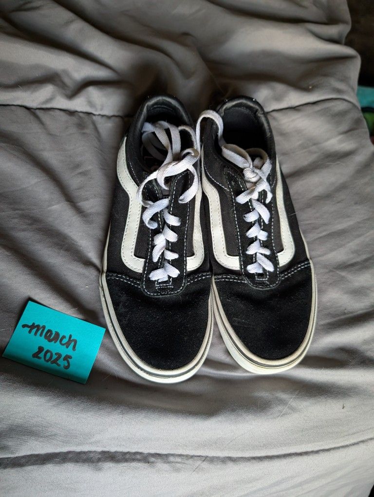 Women's 6.5 Black and White Old Skool Vans Sneaker. Like New condition except for some small pre-teen sharpie doodles that can be solved with a nice scrub from a magic eraser. $35