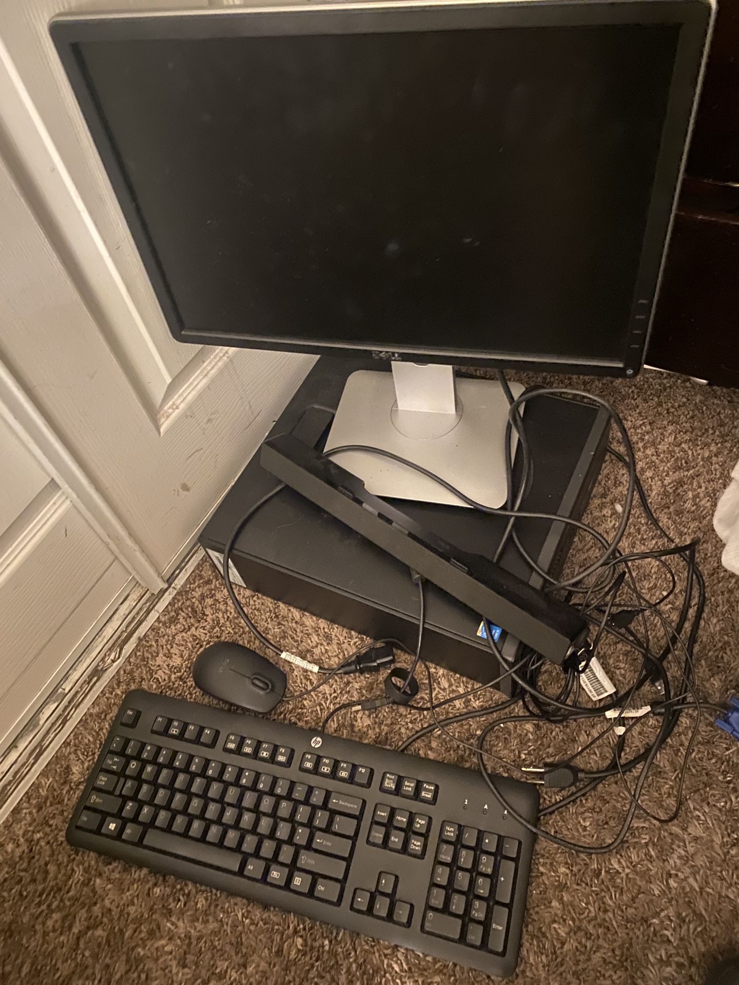 monitor is dell mouse and speaker included comes with every plug needed works fine