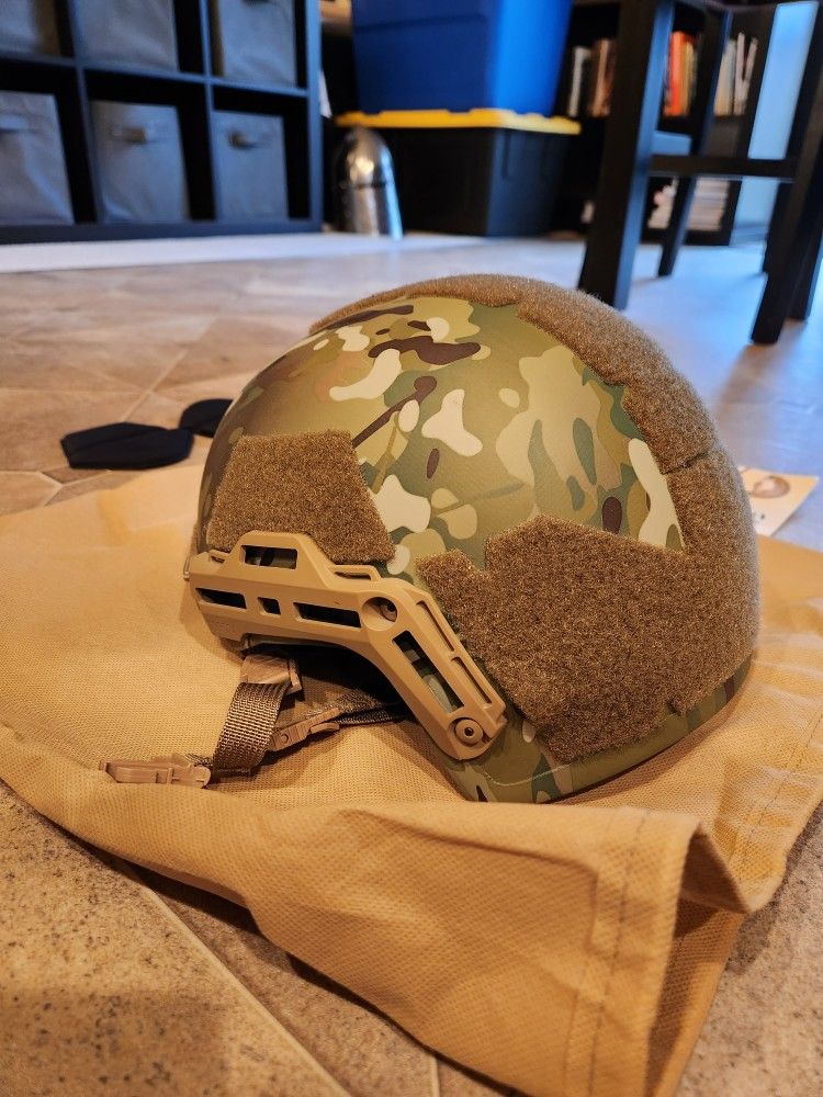 Extremely good condition, only worn a few times. Never dropped or mishandled and looks basically brand new except for a couple tiny specs of wear from night vision. Straps are adjustable and comes with an extra set of thin pads if you have a larger head. Also comes with warranty card, carry bag and velcro stickers for attaching different pieces of padding. Great helmet, but I'm not using any longer. Please reach out with questions!