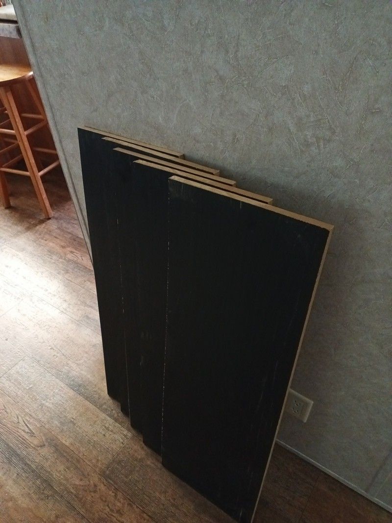 I got an offer I couldn't refuse at a cabinet manufacturing company but I had to cut up 12 ft boards and fill up my car with them to get the deal. This is real wood used in quality cabinets and there is a thin melamine coating on each side. I took home black and tan coated boards and I used up all the tan pieces. I have left some black planks that are pre-cut to 36-in long by 11.5 -in wide by 1/2-in thick. I did all my cutting with a Ryobi portable saw and the dust is the kind you get from quality wood and not particle board. You can have all five pieces for $10 total. That's $2 a board. You must take all. Meet area is 500 Green Road Pompano Beach. Please bring exact cash thank you.