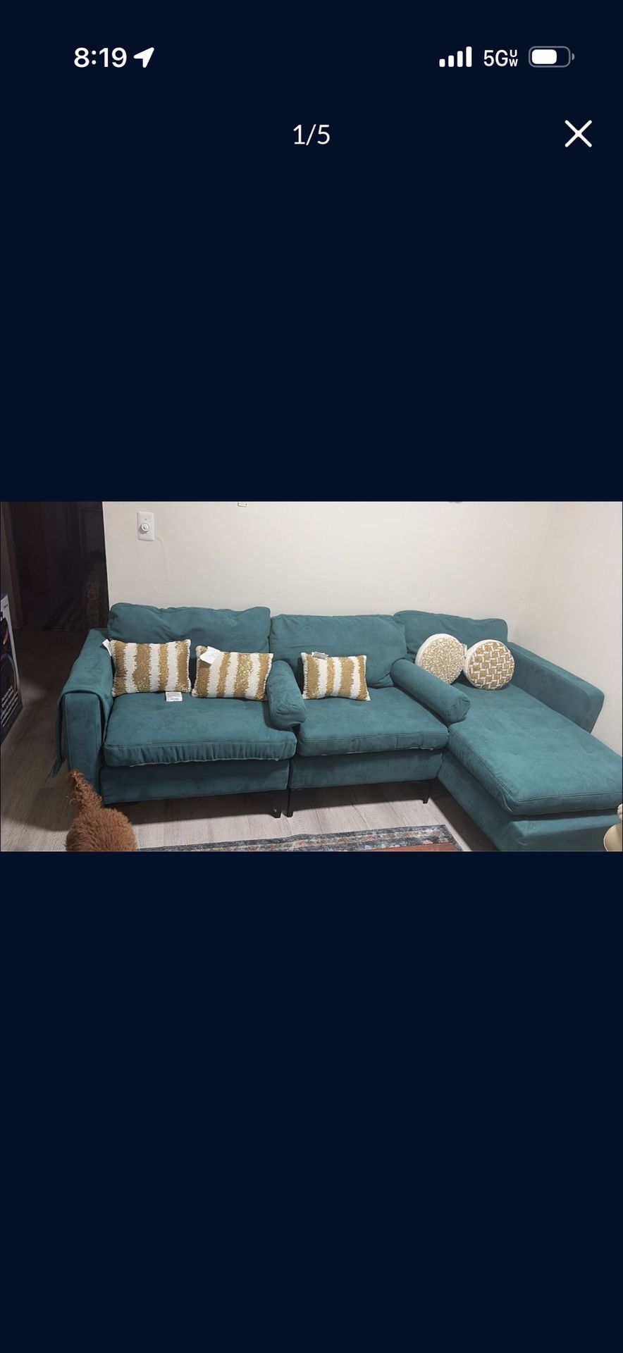 I have this green section you never used buy it last week is not with my living room smoking free kids free bat free original price was $750. I’m asking only for $150.