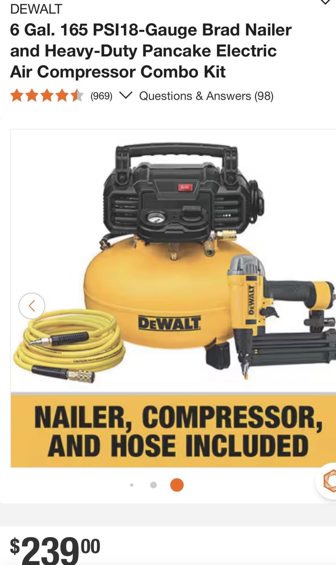 DEWALT AIR COMPRESSOR NAILER, COMPRESSOR, AND HOSE INCLUDED 6 Gal. 165 PSI18-Gauge Brad Nailer and Heavy-Duty Pancake Electric Air Compressor Combo