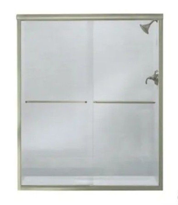 BRAND NEW IN BOX Stirling Finesse Bypass shower Door Model: FINESSE Model #: 5475-59N-G69 Color/Finish: Brushed Nickel Glass: Lake Mist Pattern Size: 60" W x 70" H