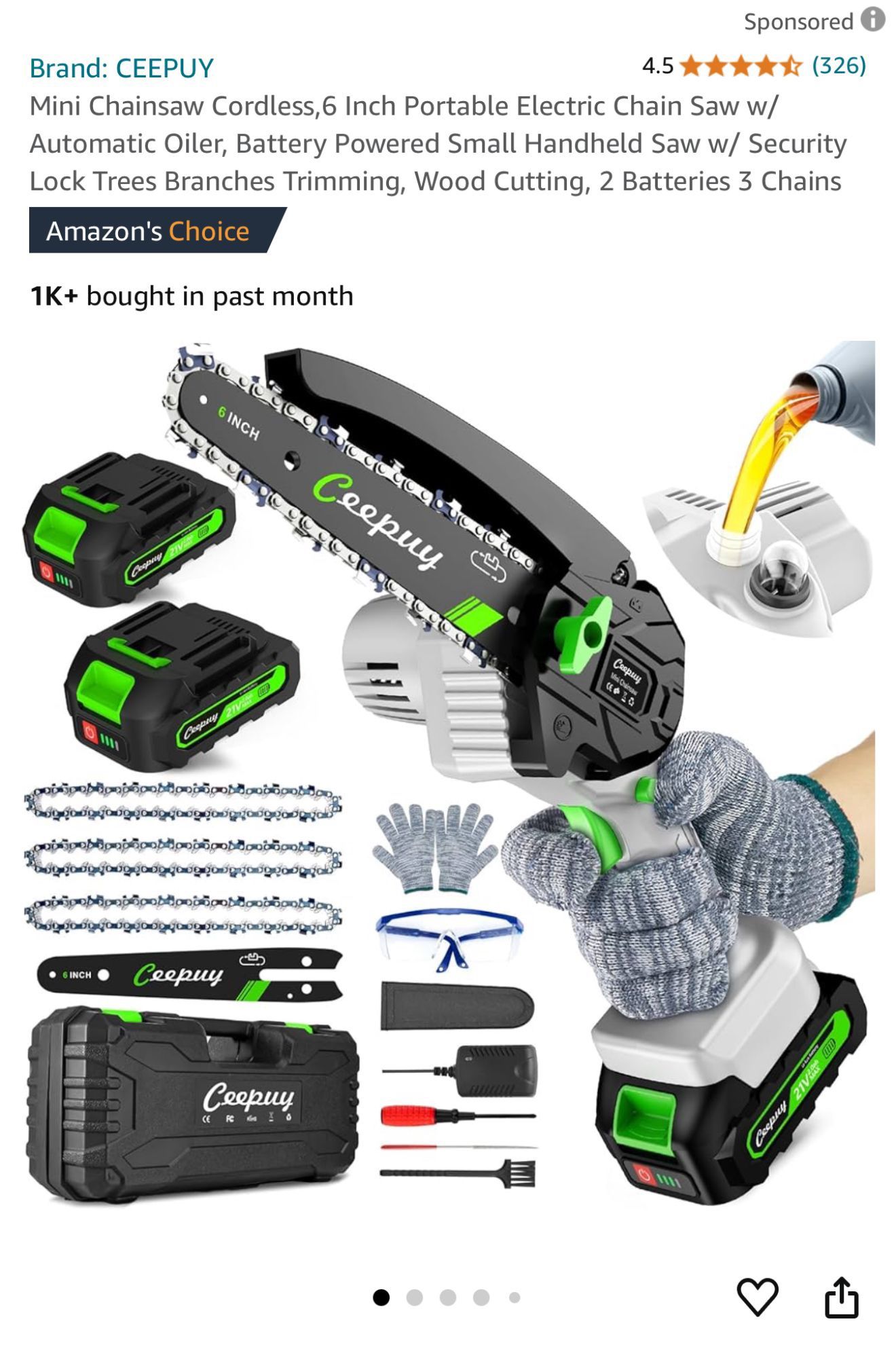 Mini Chainsaw Cordless,6 Inch Portable Electric Chain Saw w/ Automatic Oiler, Battery Powered Small Handheld Saw w/ Security Lock Trees Branches Trimm