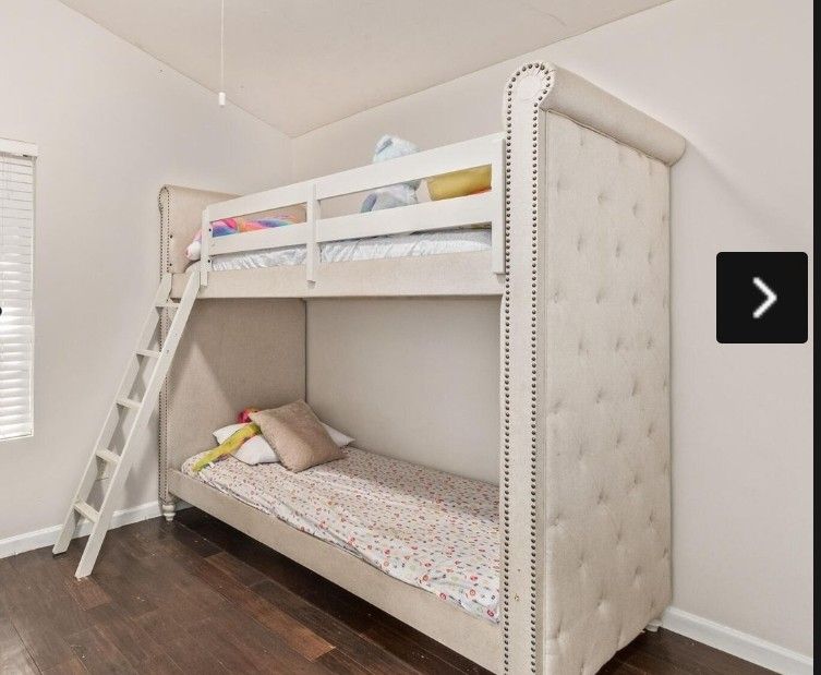 Nail trim bunk beds from livingspaces, mattresses included. Only 3 years old.