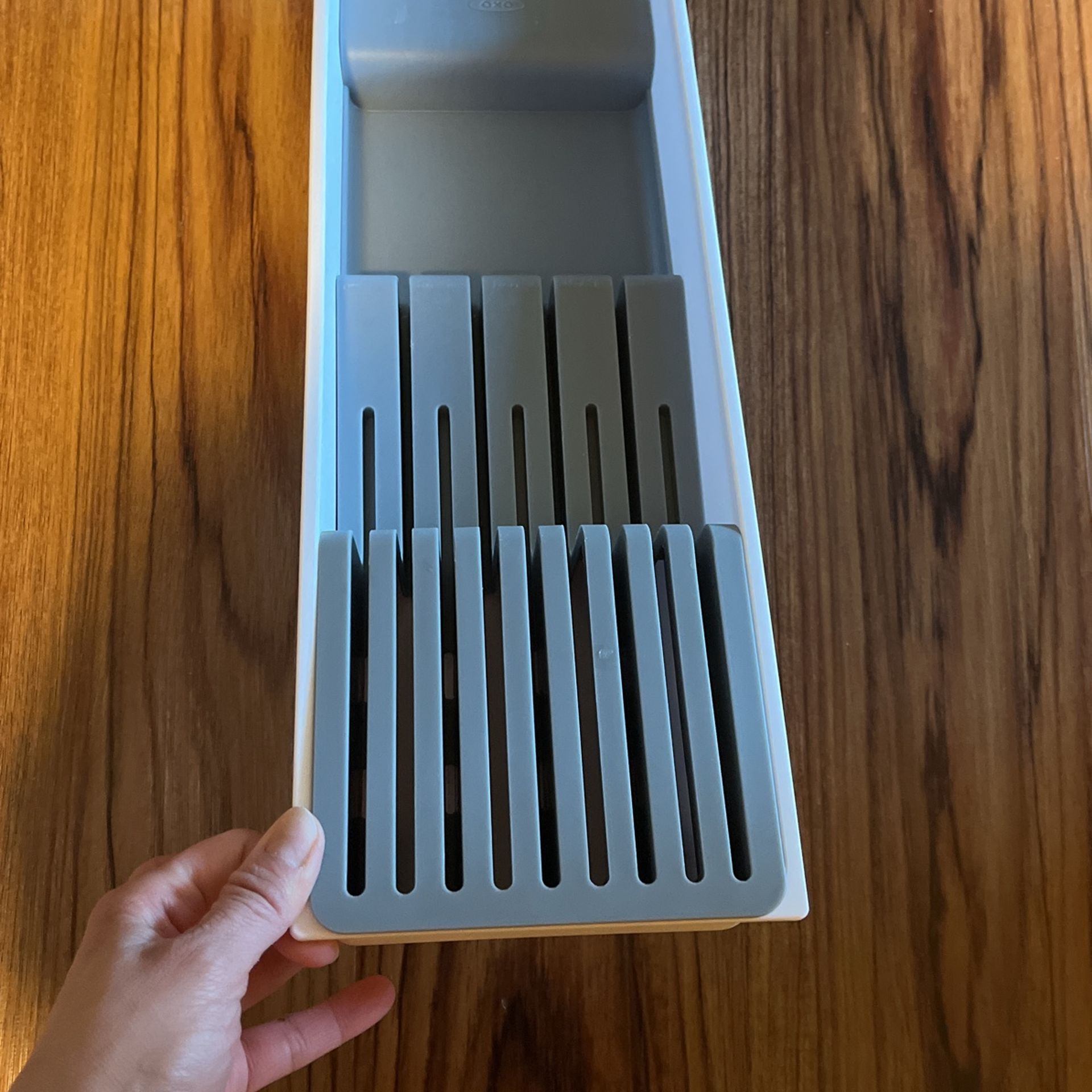 Knife holder. Easy to clean. Fits in drawer if you’re like me and don’t like butchers block on the counter!