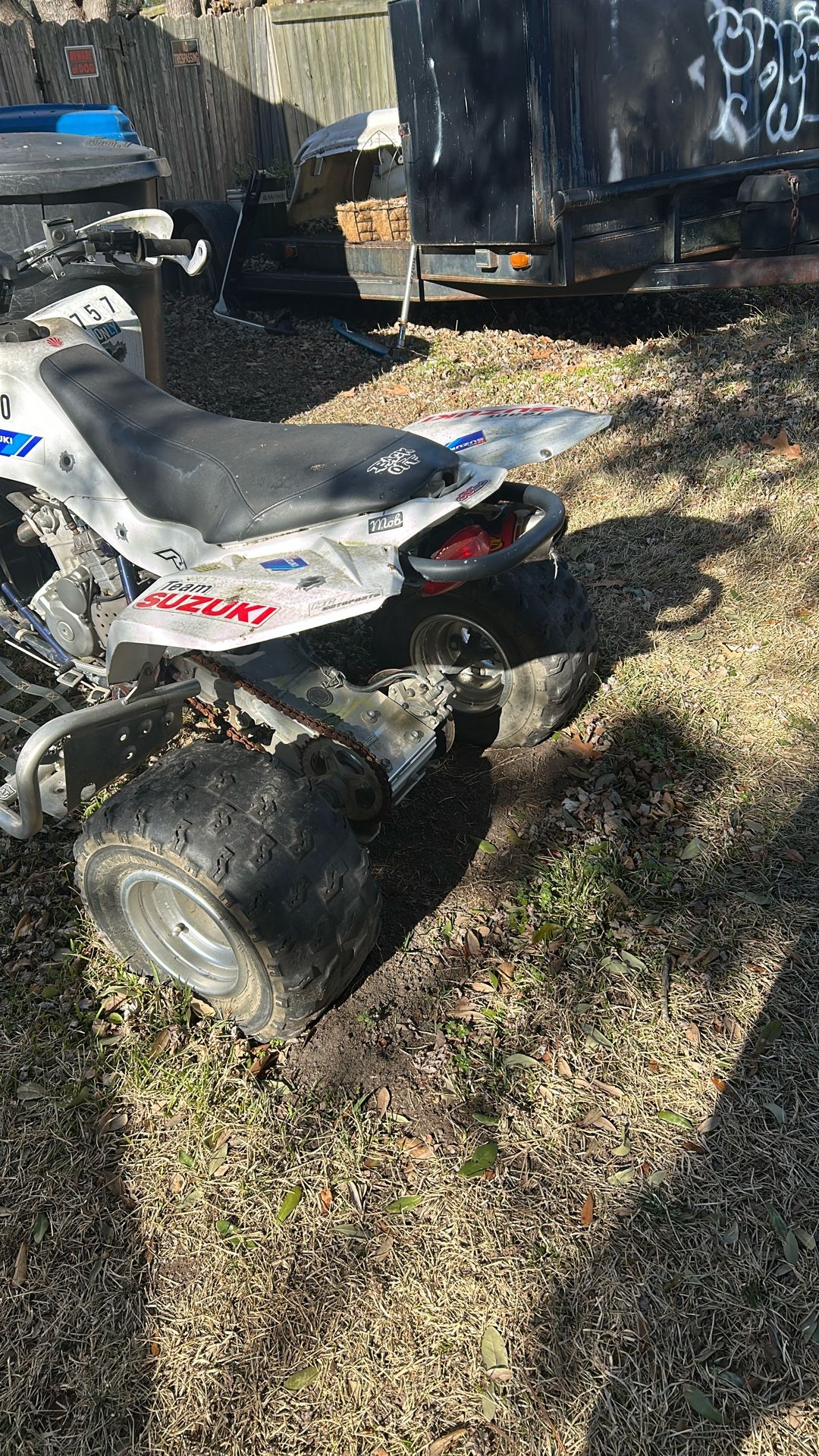 Engine runs strong it just needs fuel injectors cleaned!! Has skid plates and nerf bars and new front guard and new back grab bar!! Hole shot rims and aftermarket FMF exhaust!! Clutch and motor are in excellent condition!! Could use new back tires!! Does have reverse as well!!