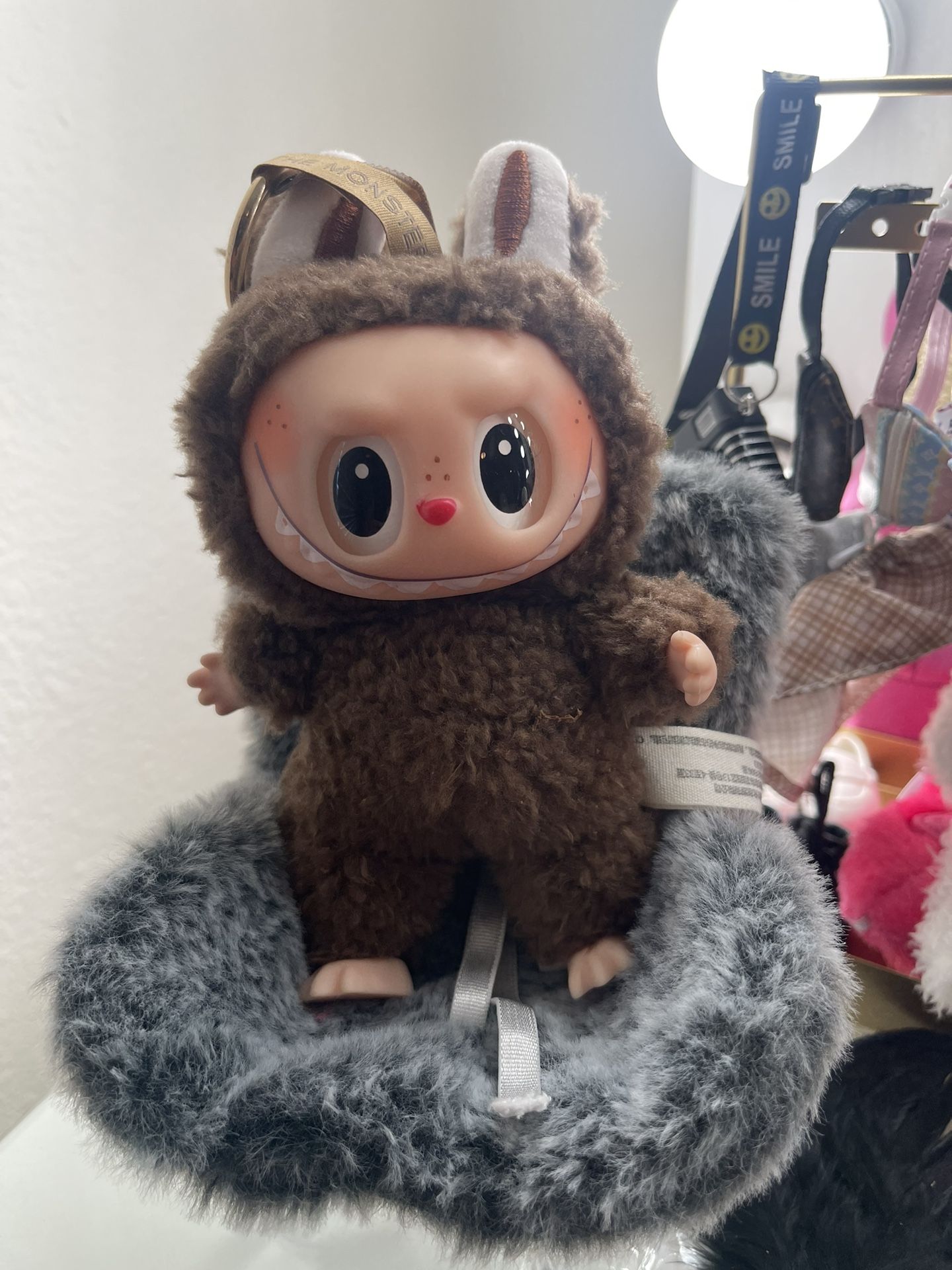 Labubu/fufu with all the markings and tags saying popmart the monsters. Clothes are not included and just for example only. OBO