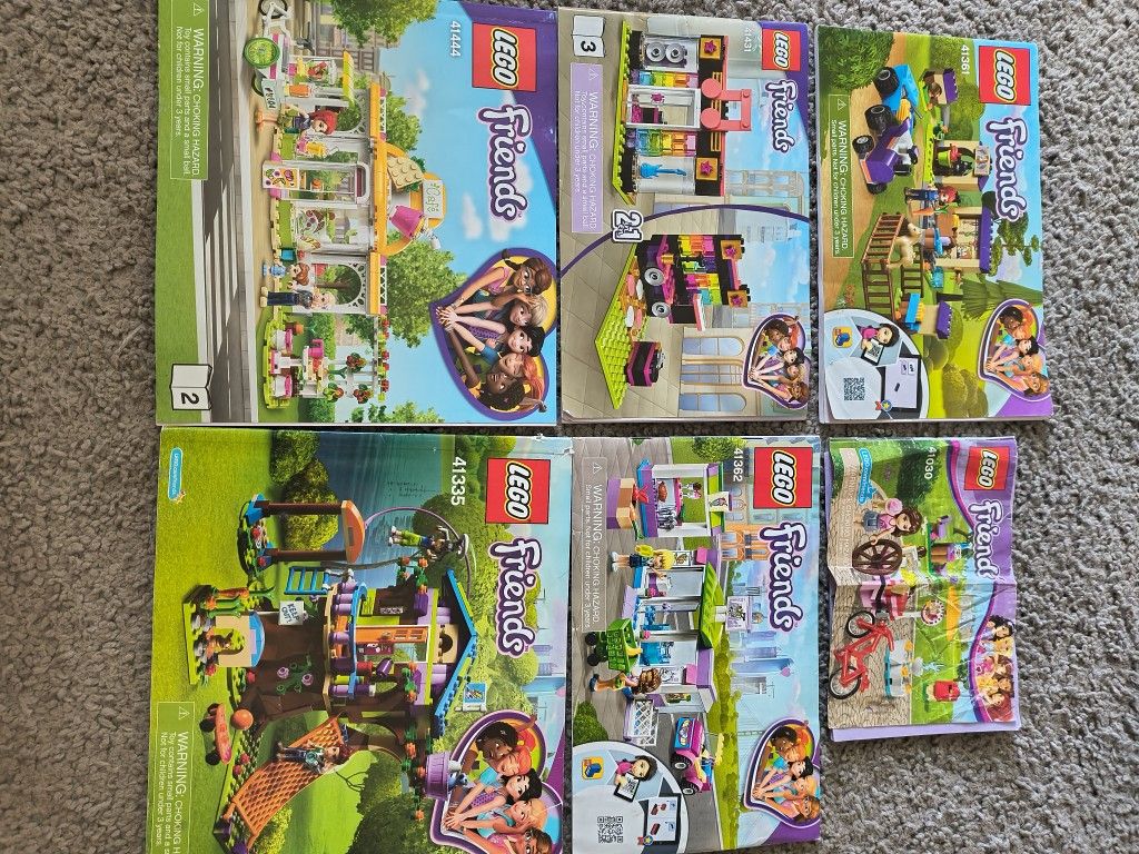 OBO -Lego friends collection, selling as lot as purple Lego bin contains misc. pieces to various sets. Over $800 value several sets retired. Has just been sitting in display, kids outgrew. Sets bagged separately. Sets include: Forest Camper #41681 Doggy Daycare #41691 Cupcake Cafe #41366 City Cafe #41444 Waterfall #41667 Hair Salon #41391 Horse Training Center #41441 Stable #41361 Ice Cream Bike #41030 Friendship House #41340 Art Stand #41332 Mia Tree House #41335 City Market #41362 Magic Fair #41687 Vet Clinic #41446 2 en 1 set w/Lego box #41431