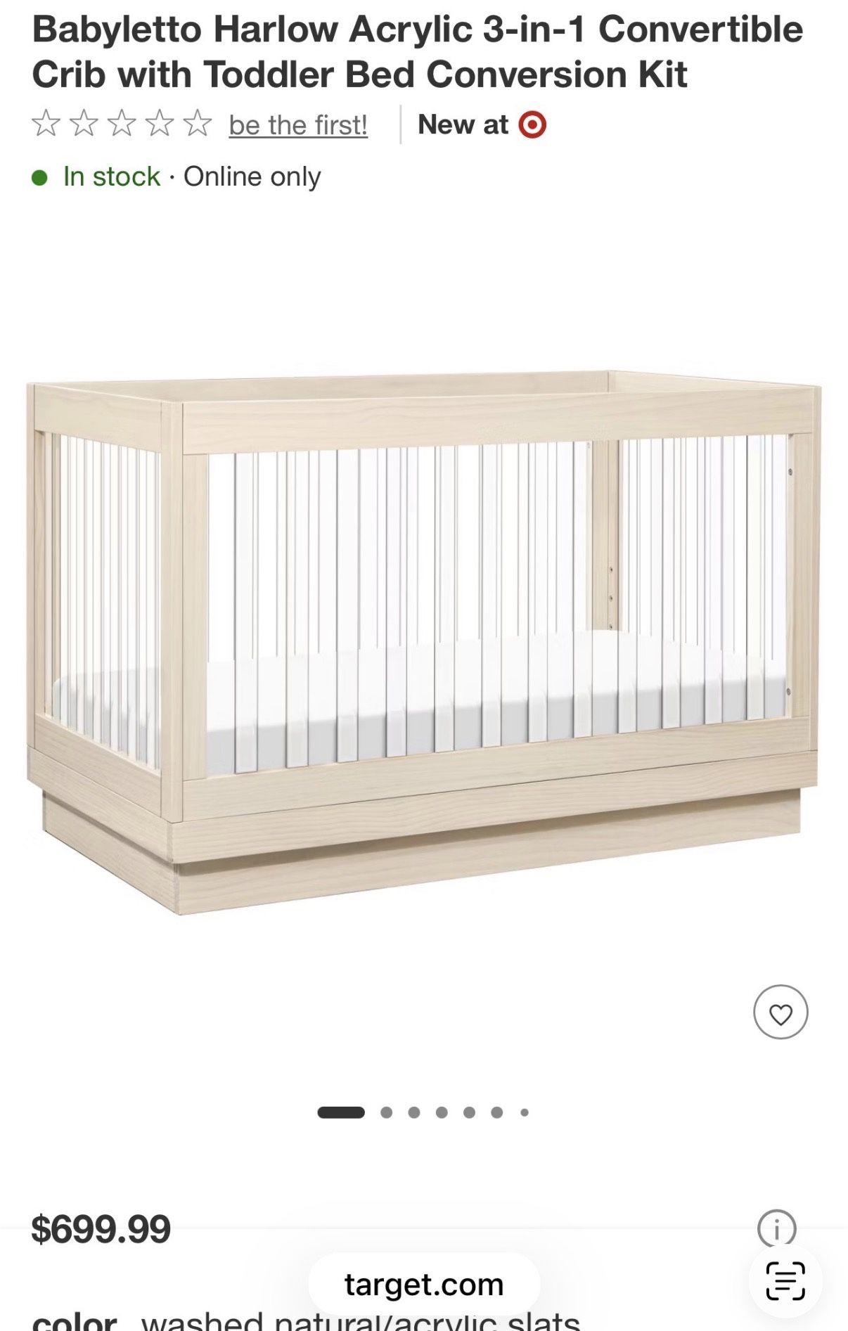 Babyletto Harlow Acrylic 3-in-1 Convertible Crib with Toddler Bed Conversion Kit Plus baby chill crib mattress