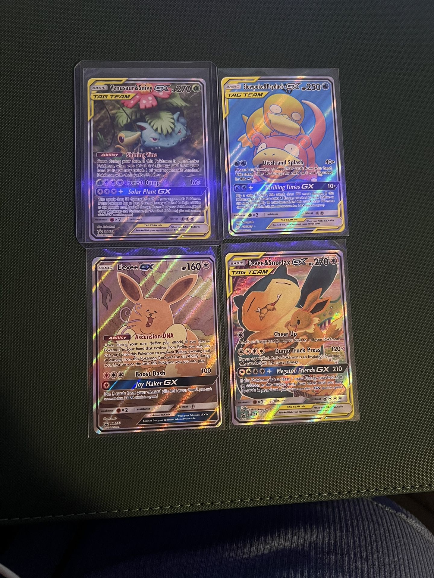All are NM except Slowpoke Psyduck Venusaur Snivy - $70 Eevee GX - SOLD Eevee Snorlax - SOLD Slowpoke Psyduck - $70 Feel free to send offers, not necessarily looking to trade.