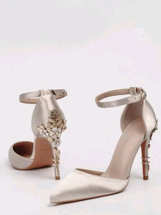 Deluxe Glittering High Heels With Metal Flower Decor, Pointed Toe Silk Slingback Pumps