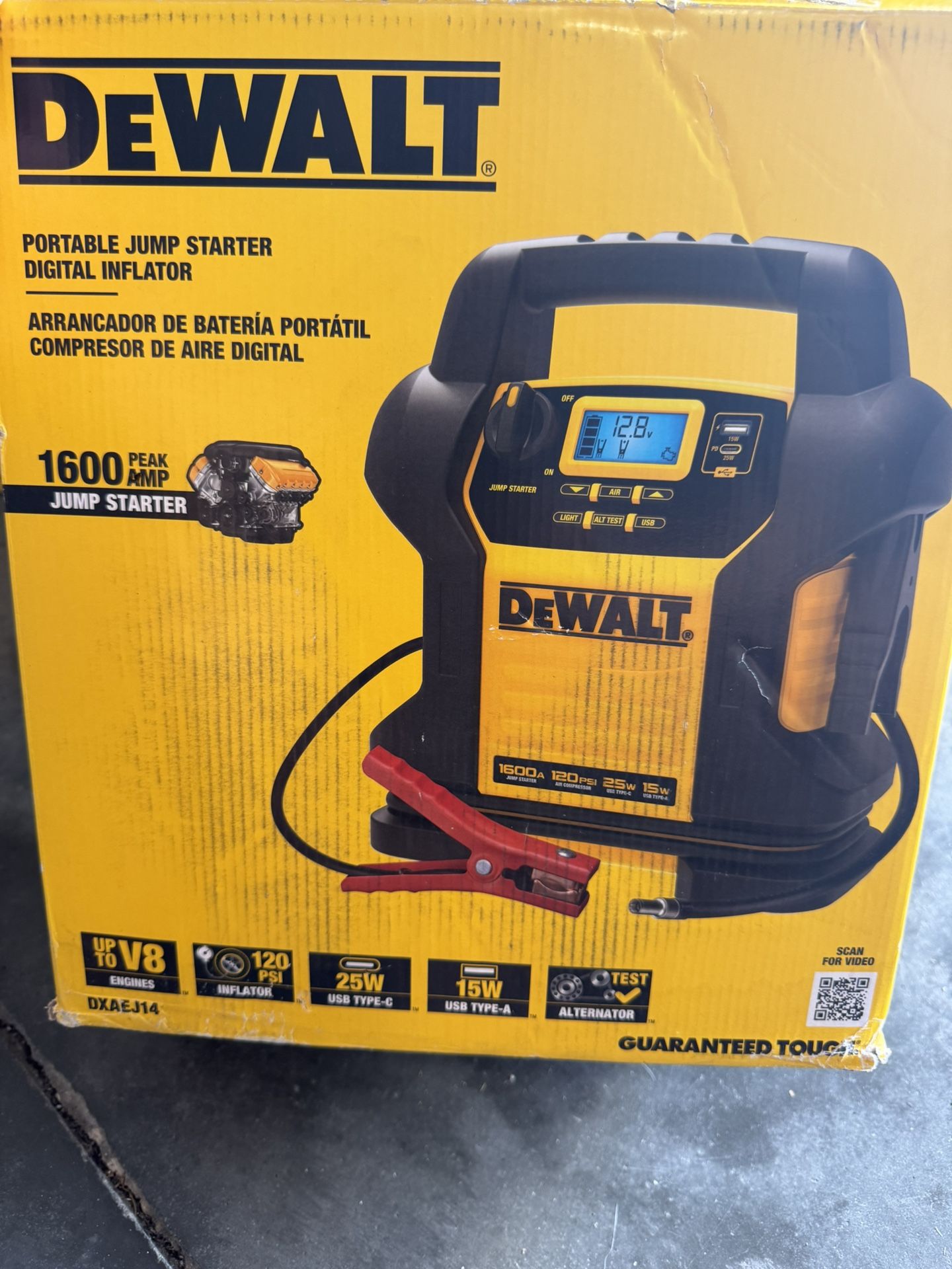Dewalt 1600 Peak Amp Jump Starter with Digital Compressor and USB Power Bank Retail price:$170 Selling for $150 OBO