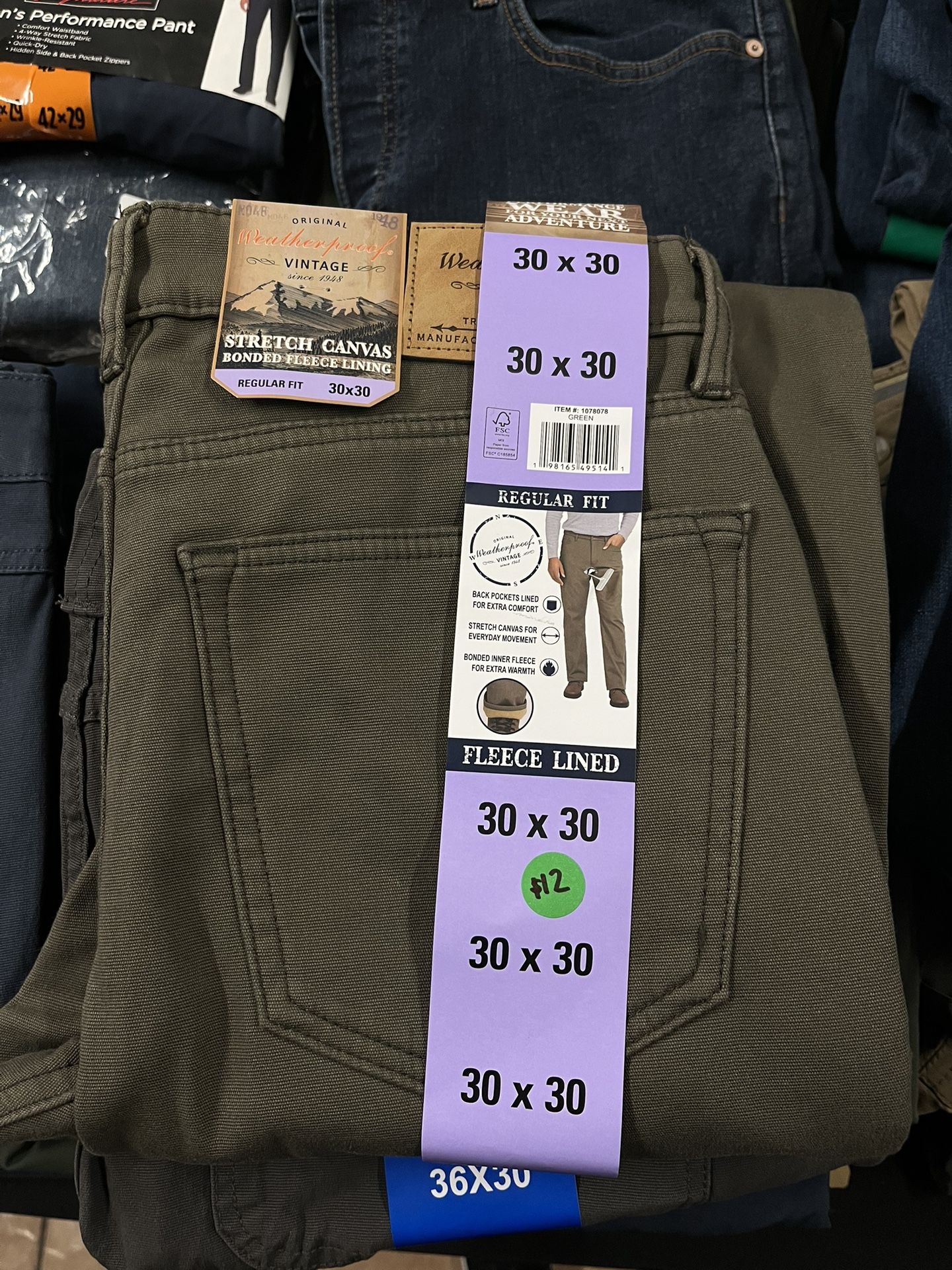 Men’s Fleece Lined Canvas Pants 30x30