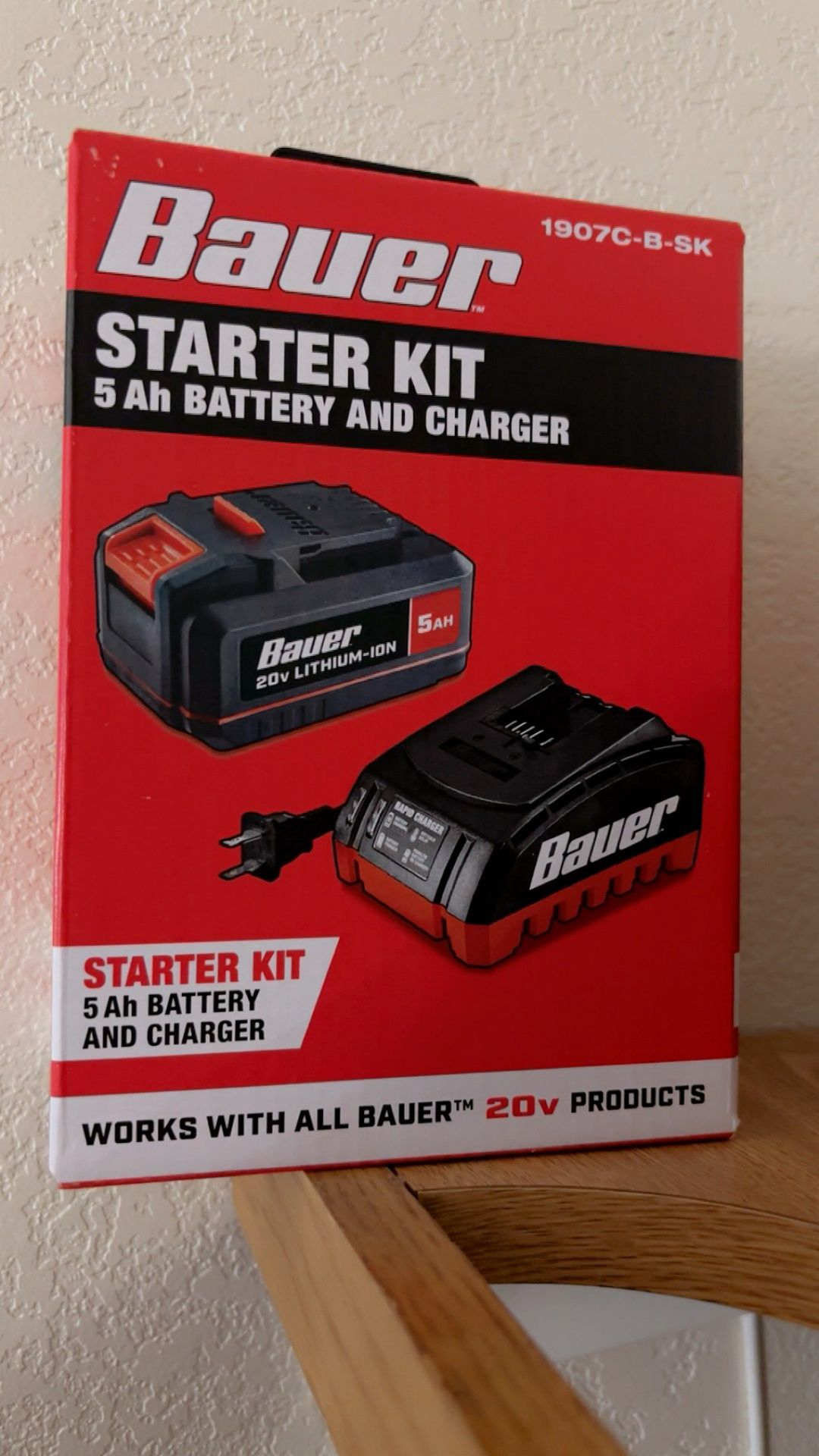 BRAND NEW SEALED BAUER 1907C-B-SK STARTER KIT 5AH BATTERY AND CHARGER BRAND NEW SEALED BAUER 1907C-B-SK STARTER KIT 5AH BATTERY AND CHARGER. AS SHOWN IN THE PHOTOS ABOVE THE BOX HAS NEVER BEEN OPEN.