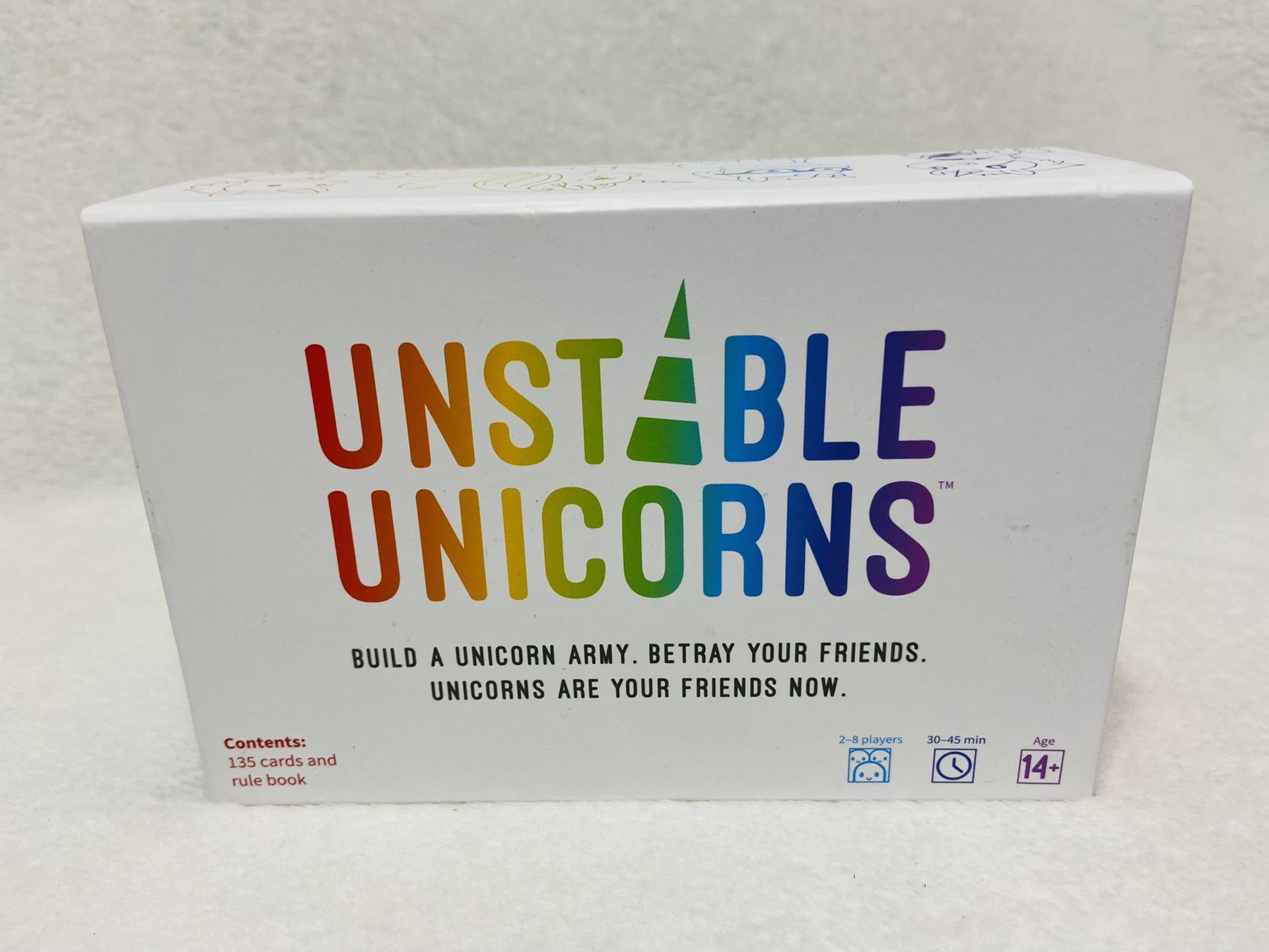 Unstable Unicorns is a strategic card game that will destroy your friendships...but in a good way. The game was one of Kickstarter’s top 100 most backed projects of all time and won the 2019 People’s Choice Award for Toy of the Year. 2-8 players 30-60 minute playtime Ages 8+ We’re happy to answer any questions you may have. We’re here to help! Please ask about bundling to save big on multiple items. The more you bundle the more you’ll save. Please check out our username for an easy way to scroll through all our items. Our home is smoke-free. We have a small dog who is kept away from our stock. Thank you for checking out our little toy shop!