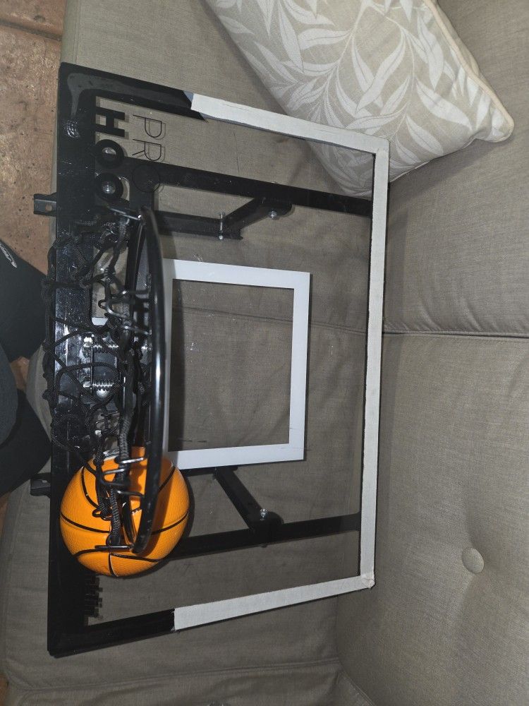 Brand new!! Out of the box includes ball and the bolts for the hoop to hang on the wall