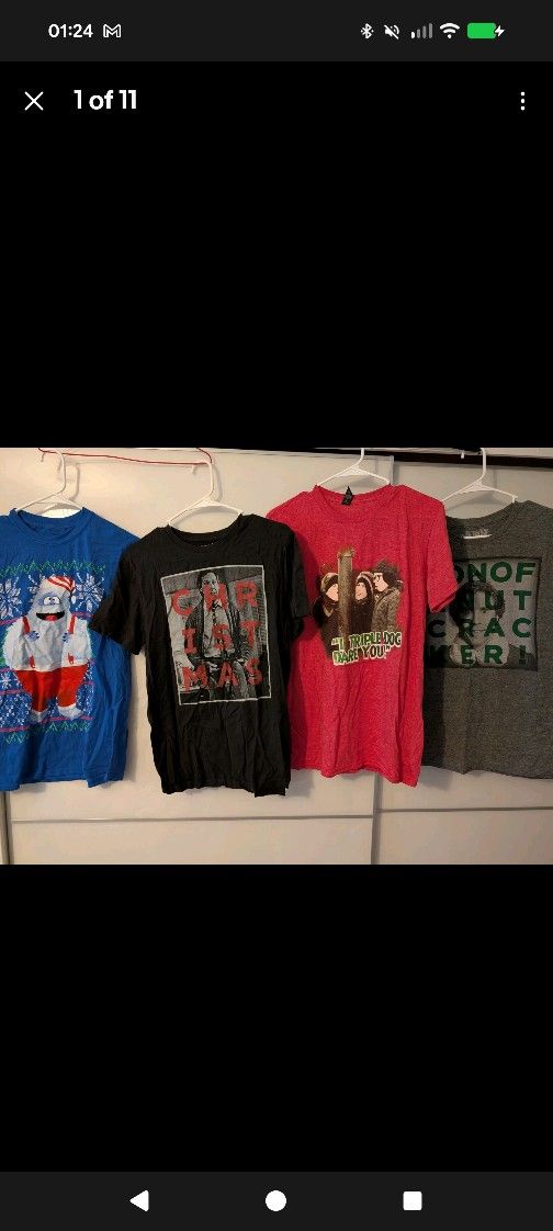 four Adominable snowman, Griswold's, Christmas story I triple dog dare you, Rudolf, elf Son of a Nutcracker!!! All mediums, stretchy material. Women's. Some have been worn, some not. Excellent like new condition. All a bit crumpled from vacuum storage but come out of laundry uncreased. Easy care.