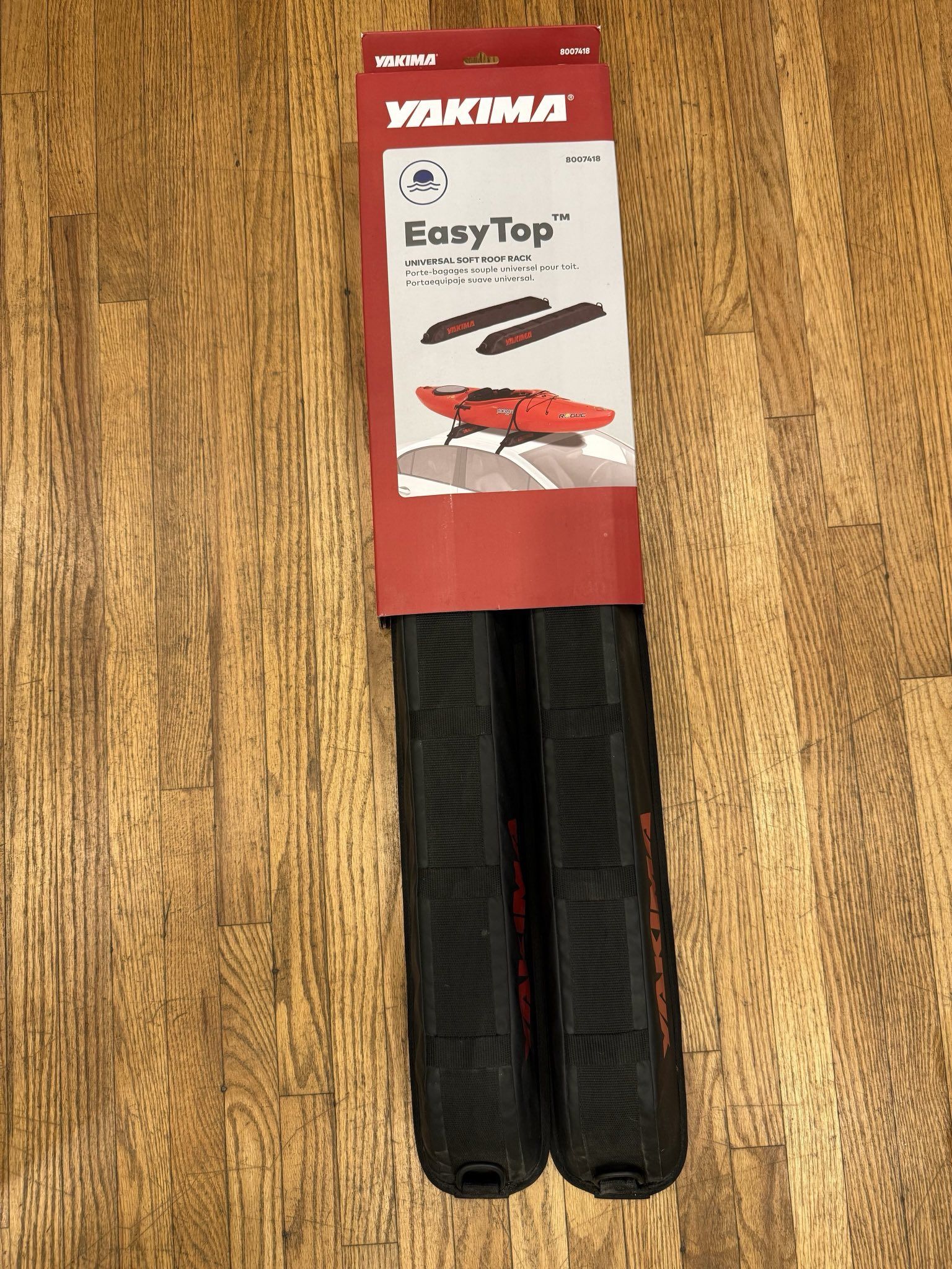Brand new, never been used roof rack. Bought it because we thought we were getting a kayak. Then realized the kayak storage had a 3 year wait period and well… now we don’t need this. Hope you and your kayak love this roof rack. (Or whatever else you need to transport on your roof…. Like a surfboard, etc)