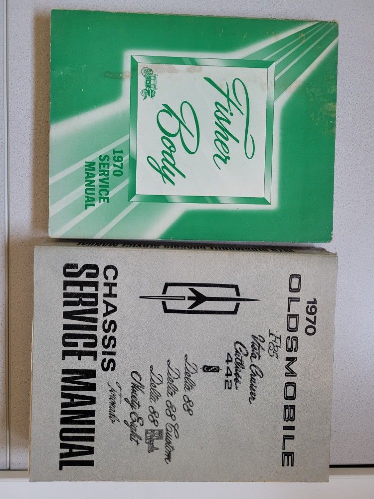 Includes Fisher Body and Chassis Service Manuals for 1970 Oldsmobile models. Good condition.