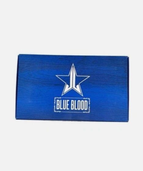 Jeffree Star Cosmetics Blue Blood Eyeshadow Palette New in packaging Features 18 shades of blues, mints, and peaches in matte, metallic, and pressed pigment finishes. The palette is vegan, cruelty-free, paraben-free, and gluten-free. It is housed in a jewelry box-inspired case with a metal clasp.