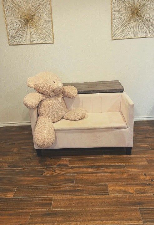 Small Light pink couch with storage Comes with free pink teddy bear! In good shape