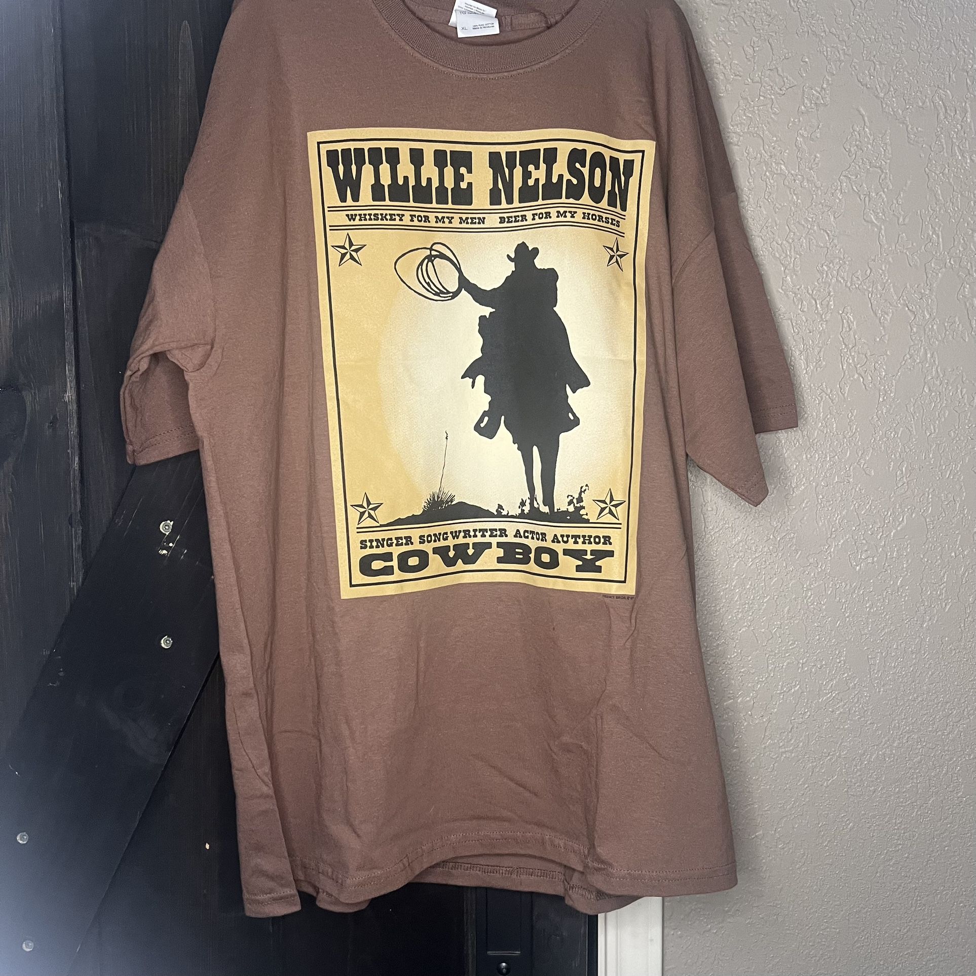 Willie Nelson T-Shirt - Brown - Old Whiskey River - Beer For My Horses - Cowboy XL