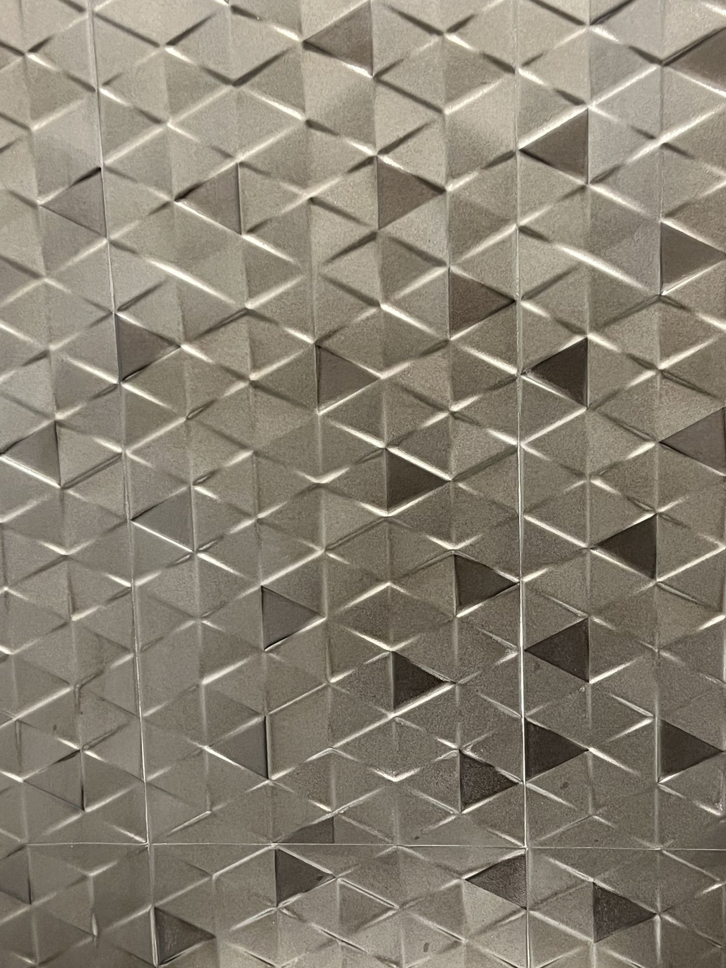 ~ 12x35.5 Grey/silver Shimmer 3D porcelain tile. 7 pieces available. Covers about 24 Sq ft.